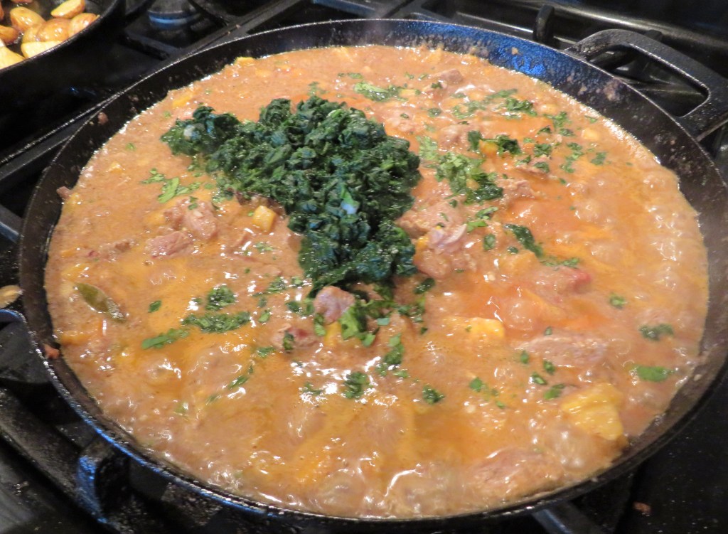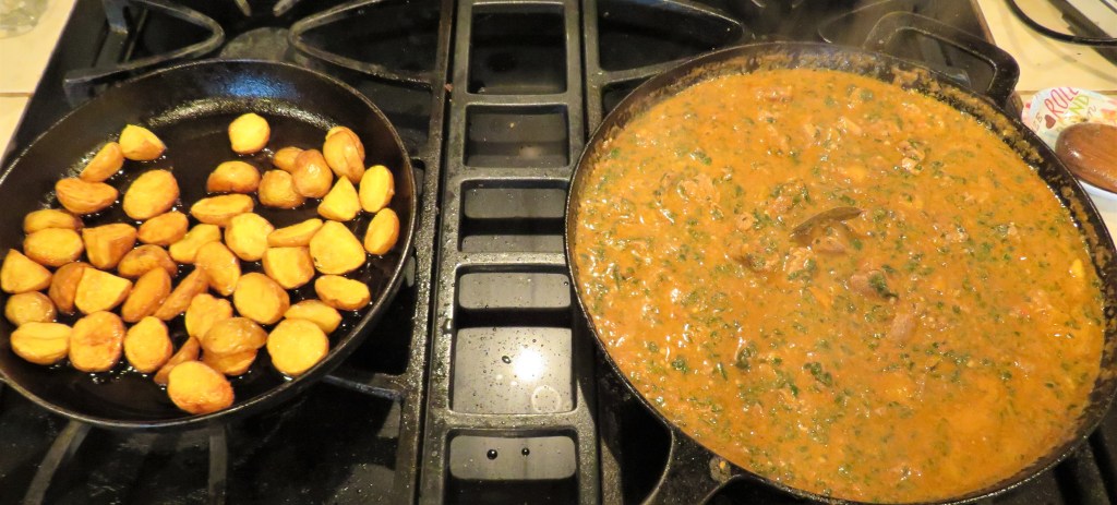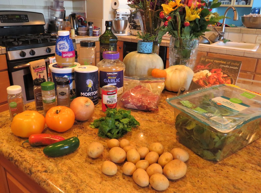 We have been on a lamb kick since we’ve been home from Spain. Larry pulled lamb out of the freezer once again. He said he wanted it cooked in some kind of an Indian way, but other than that, he was open to let me do my thing. And that I did too. I made it into an Indian curry dish with spinach. I love all kinds of curry. I don’t cook them with the Western mindset about curries. I cook curries in the traditional ways they are meant to be cooked, from all the curry countries of the world. Curries, like any other dish vary from region to region and dish to dish.