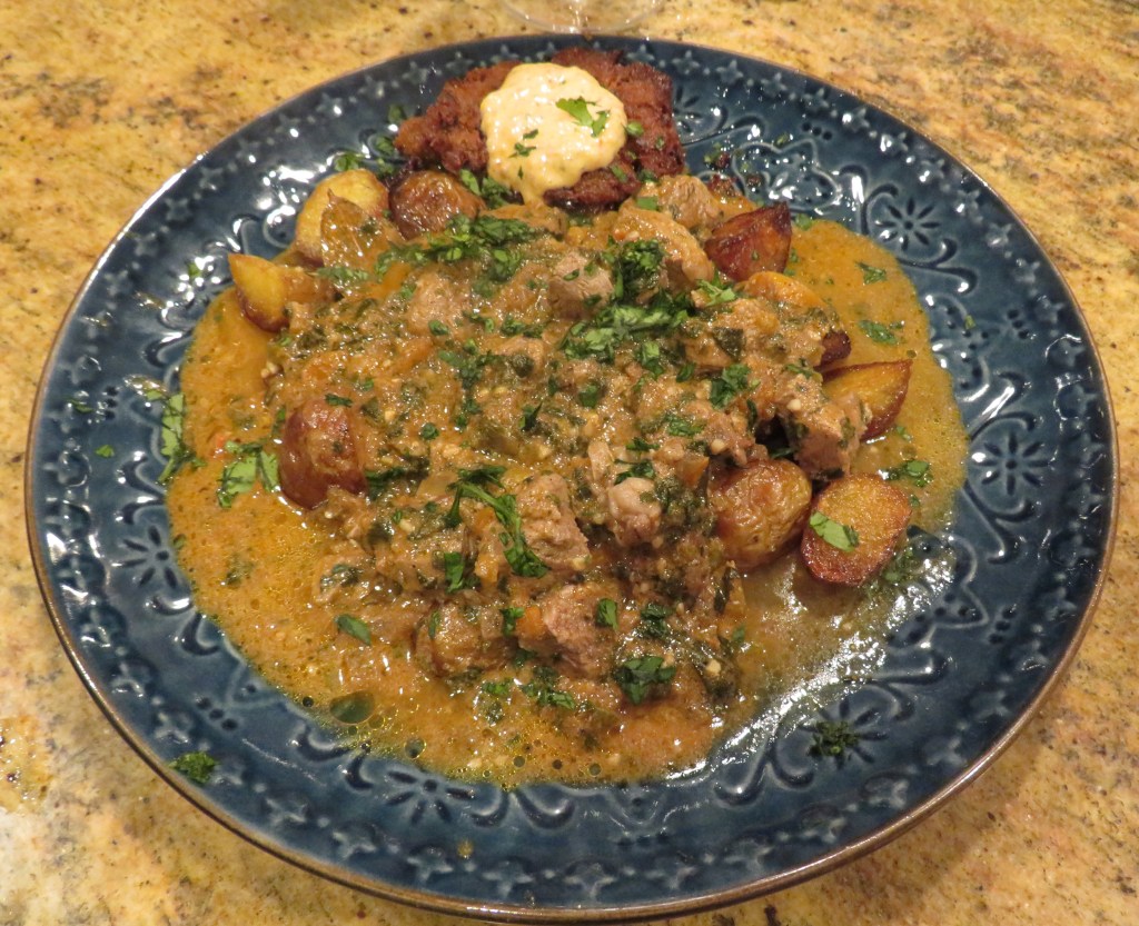 When the potatoes and lamb were done, I combined them together. I till should have served it over rice, but as I mentioned above, I was trying to avoid rice two nights in a row. Next time, I will do the same thing, but will definitely serve it over rice as well. Once I serve it, I added more of the chopped cilantro on top.