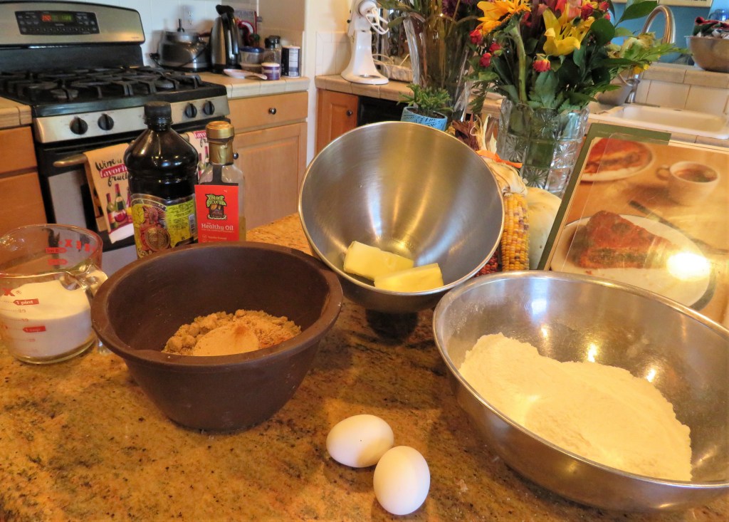 In keeping with the German traditions, I made a German coffee cake for our German cooking class, with Janet, Bob and Luke. Our German Cooking Class. The recipe came straight out of one of my German cookbooks too. 🙂