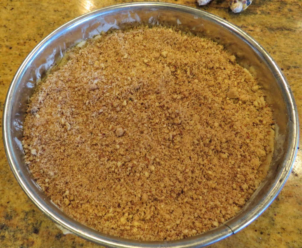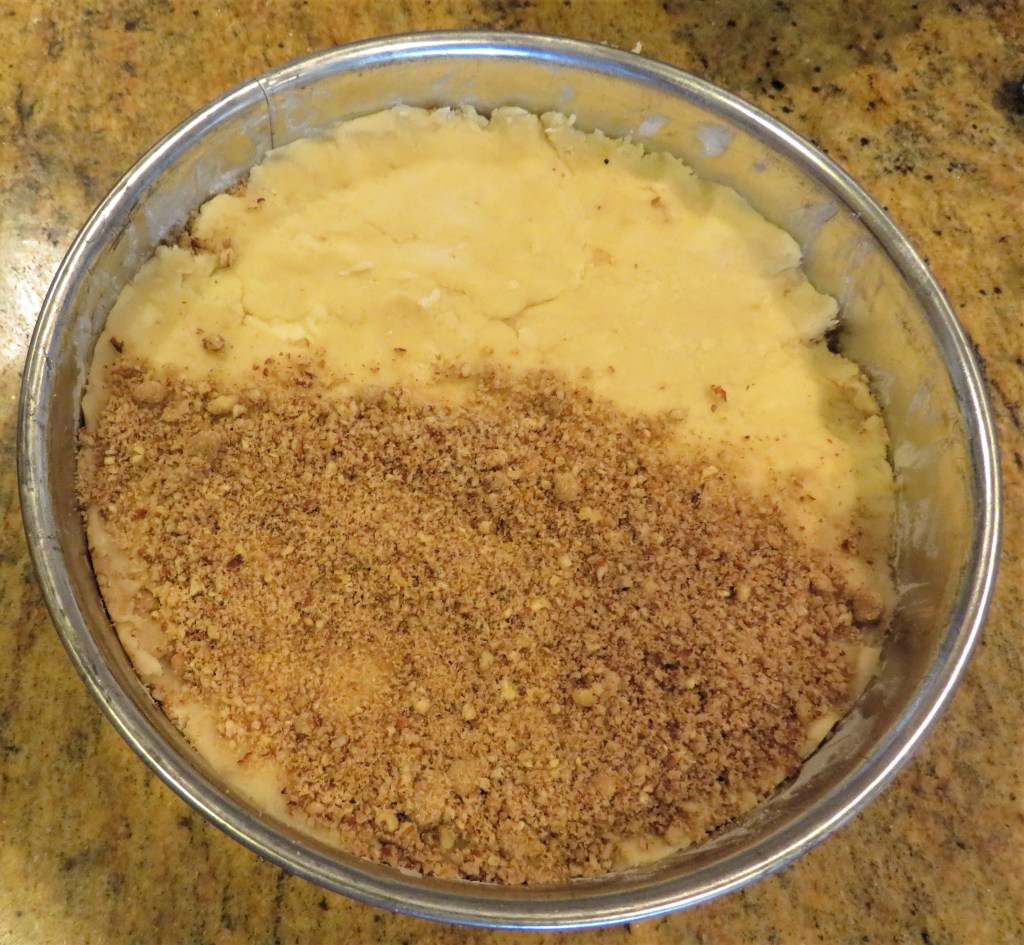 The cake part of this delicious treat is more like a dough than a batter. It is a thick batter that has the consistency of a soft dough. The filling is like the filling used for cinnamon rolls. The results – DELICIOUS or LECKER!