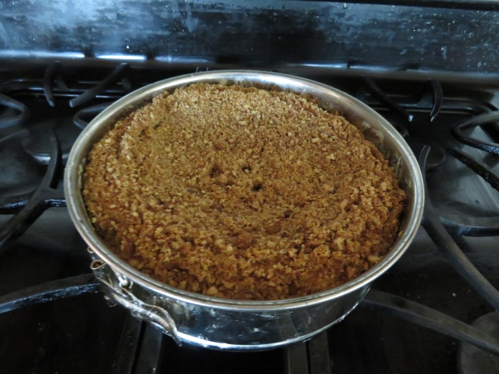 Bake for about an hour, or until a toothpick comes out clean when inserted in the middle. Allow the cake to cool completely before removing it from the pan.