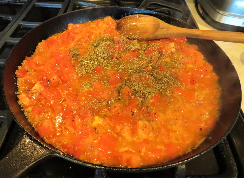 Add the diced tomatoes, seasonings and herbs. You can substitute fresh for the dried herbs, but but add them towards the end of the cooking process instead. Usually if using fresh herbs rather than dreed herbs, the ratio is 1 TBPS fresh:1tsp dried.