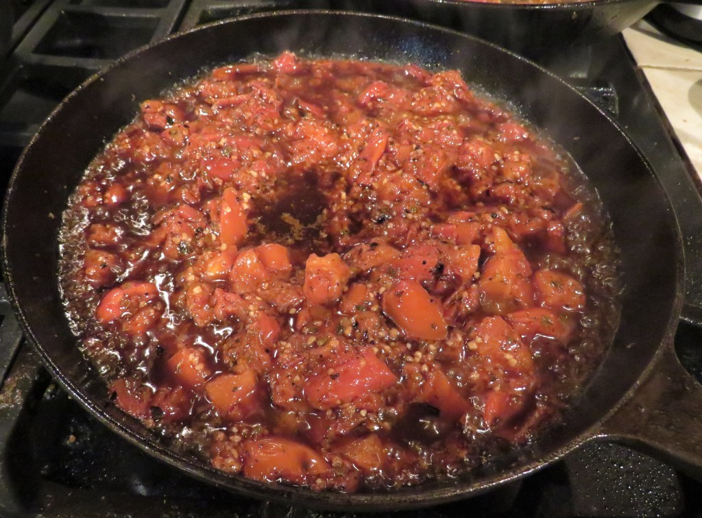 Once again, Larry had a big cut of beef down and wanted steak. I had some tomatoes that definitely needed to be used. How could I use them both and create something good for dinner? I know, I know!!!! How about steak pizzaiola.