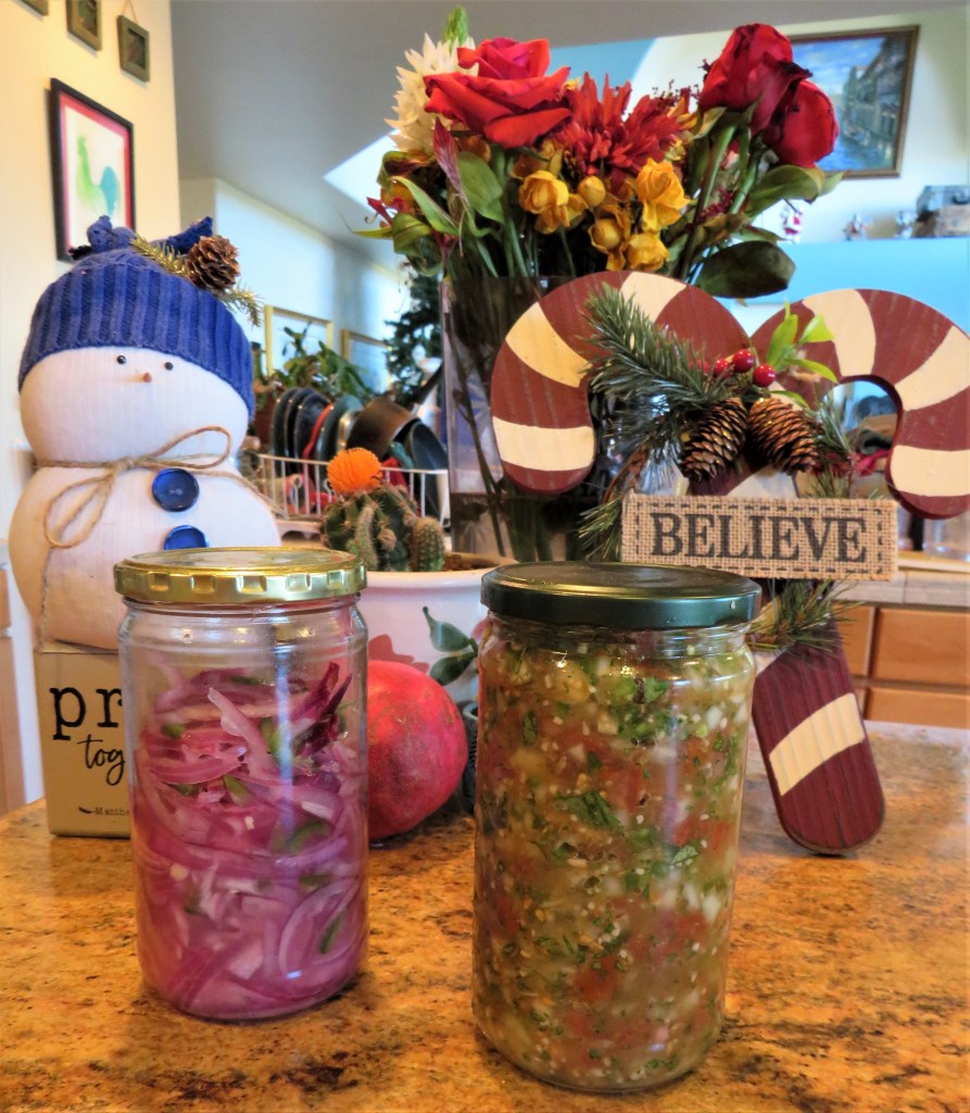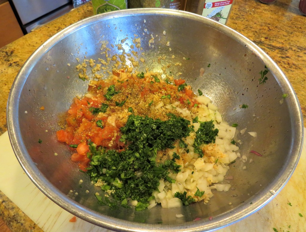 You may ask what the difference is between pico de gallo and salsa. Well, they are comprised of the same ingredients for sure, but it is all in the technique and the preparation. Pico de gallo is a fresh chopped mix of tomato, onion, jalapeño, lime, garlic and cilantro while salsa is a cooked or uncooked blended version of the same ingredients with other variations. Larry and I love spicy food, so I added a little cayenne pepper to mine as well, with a dash of oregano too.