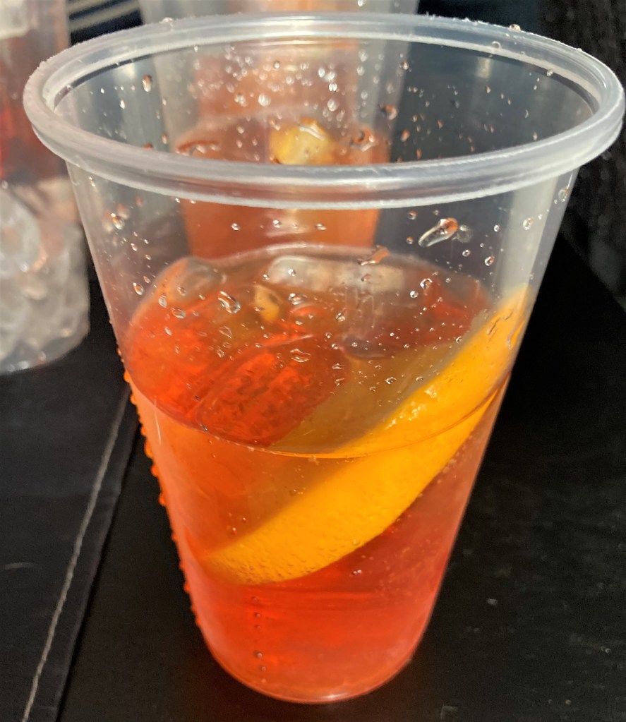 At the first stop, we started off with an apertif or drinks before dinner. An aperitif is a dry or fizzy alcoholic drink, originating from Italy, usually consumed before food. Aperitif comes from the Italian word “Aperitivo,” which literally translates as “appetiser”. An apéritif is meant to stimulate the appetite, and therefore it’s usually dry and low in alcohol. We had Aperol spritzes. Aperol is a citrusy, herbal, and bittersweet, that was mixed with tonic water and an orange slice. Aperol is a botanical liqueur that’s been made in Italy for over a hundred years. The bright orange beverage was invented by brothers Luigi and Silvio Barbieri in 1919 in Padua, Italy. It’s technically considered a type of amaro, which is categorized by its bitterness (the word amaro itself translates to bitter).