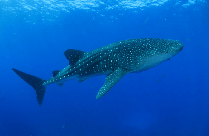 The whale sharks are beautiful, magnificent creatures. They are gentle giants. Whale sharks are found in warm, temperate and tropical waters all over the world. Oftentimes they live in the open ocean, generally near the water’s surface since that’s where the plankton they eat live. They are sharks, not whales, and are the largest fish in the world. They are plankton eaters. Whale sharks are one of only three species of filter feeding sharks, which means they spend much of their time swimming with an open mouth, sifting tiny plankton, fish, and sometimes an unlucky squid through their gills to get the energy and nutrients they need. These gentle giants have approximately 3,000 small teeth that line their mouths, but they don’t use them. Their backs are blue-gray in color with unique distributions of white spots and stripes all over their bodies while their bellies are bright white. In the marine environment, having a darker back and a lighter belly is an adaptation called countershading, which helps animals blend into the environment and allow them to avoid predation or sneak up on their prey.