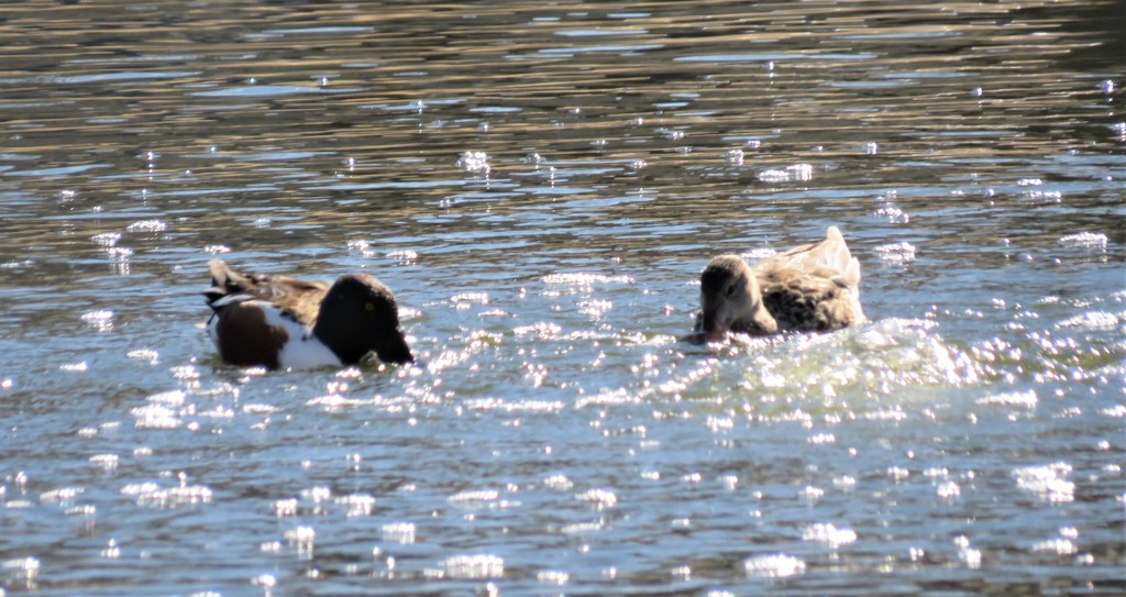 I did see a pair of Northern Shovelers though, on one of our sunny days in between the snowy days. They were fishing for food, and liked to be bottoms up more than face up.