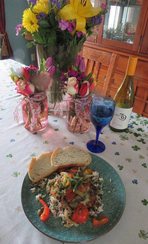 I served everything over a bed of wild rice. Then added the fish and topped it with the vegetables and sauce. Delicious. It was perfectly paired with a rich, buttery, oaky chardonnay to make a perfect spring meal.