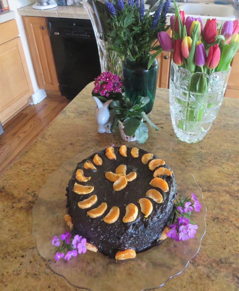 I actually did NOT host Easter this year. Instead, we went to Mike and Lauren’s for our Easter celebration. However, just because I did not host does not mean I did not cook. Lauren asked me to bring some asparagus and mashed potatoes, which of course, I did. But I also made a chocolate orange cake for dessert. I was inspired by another recipe I saw for something else, but thought that an orange and chocolate combination would be just perfect for Easter.