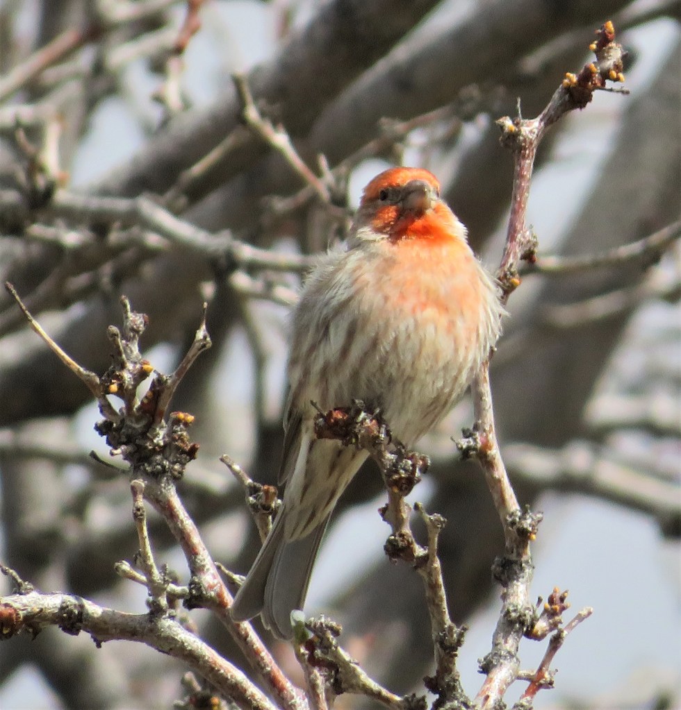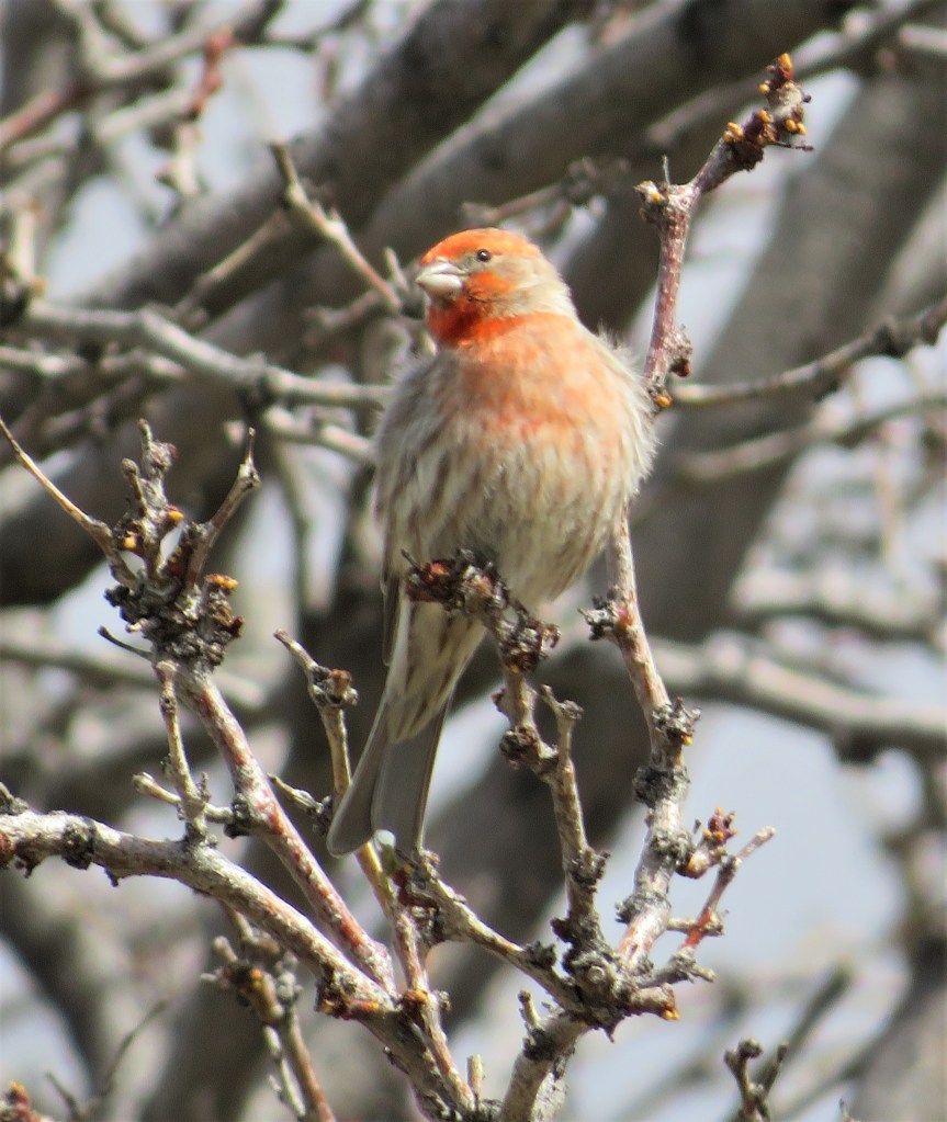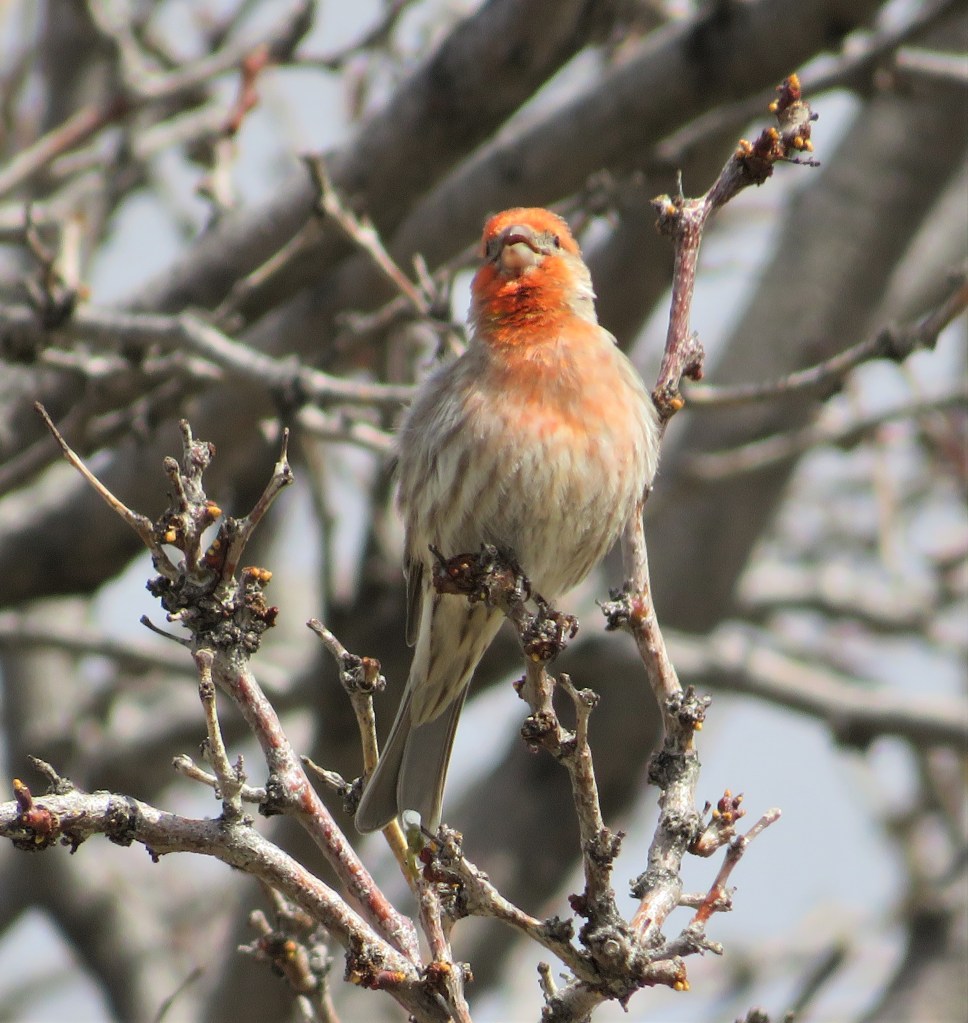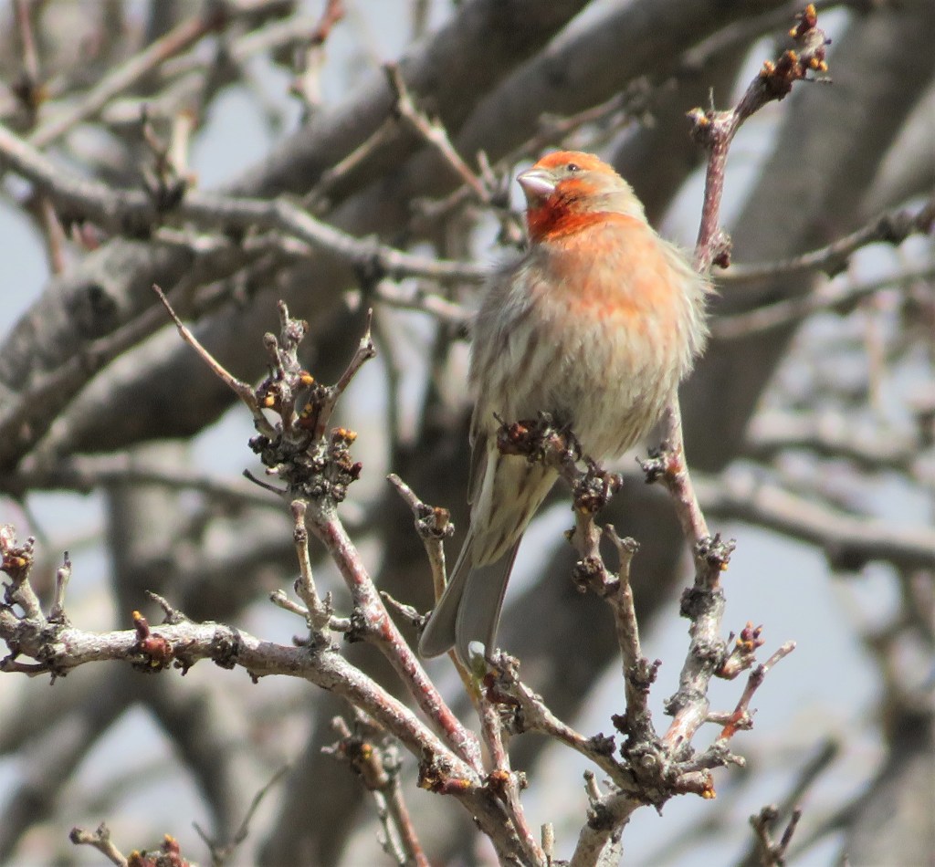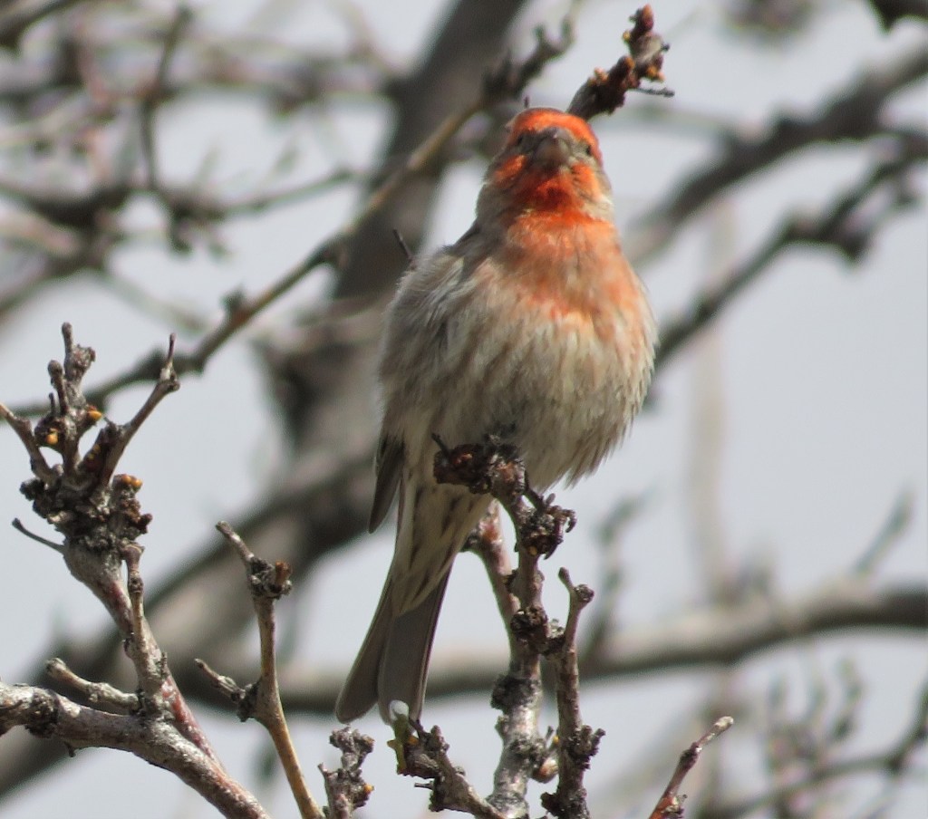 All of my spring birds are beginning to come back out to play. I have heard them a lot more than I’ve seen them for the most part, but they are beginning to come out now. Today, I was lucky enough to see a very handsome Rosy Capped Finch posing in the tree. I even caught him singing.