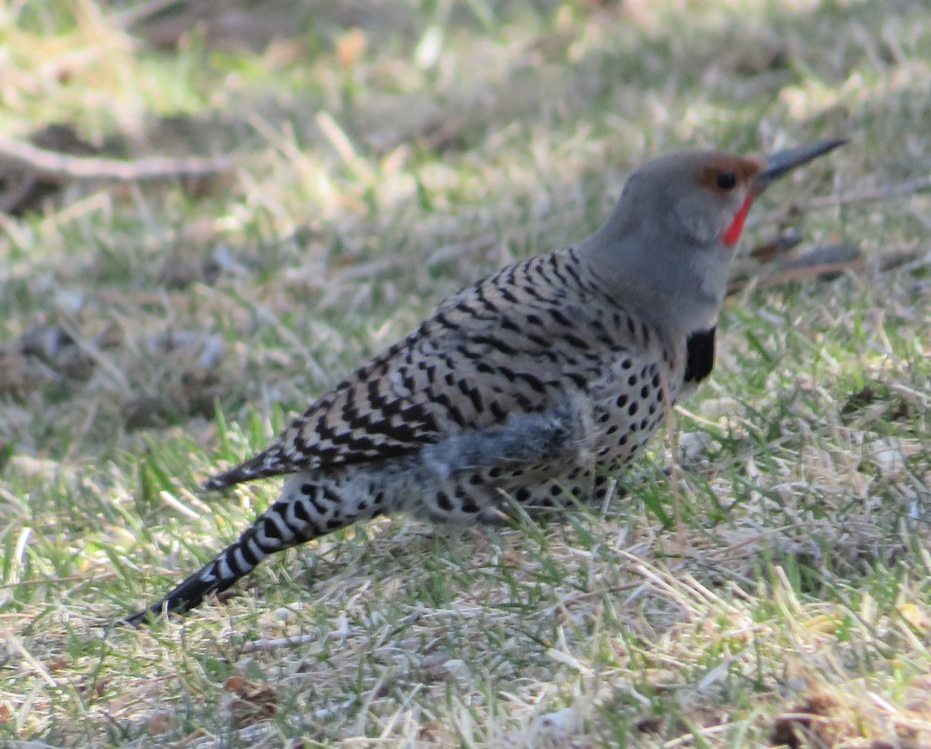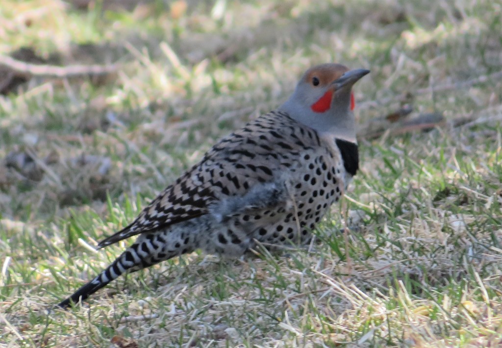 Spring is in full swing now, and I am seeing more and more Northern Flickers out and about. I will never complain when meeting up with these gorgeous feathered friends. The males are so handsome with their red crested throats. The females are pretty too, though their colors are much more muted.