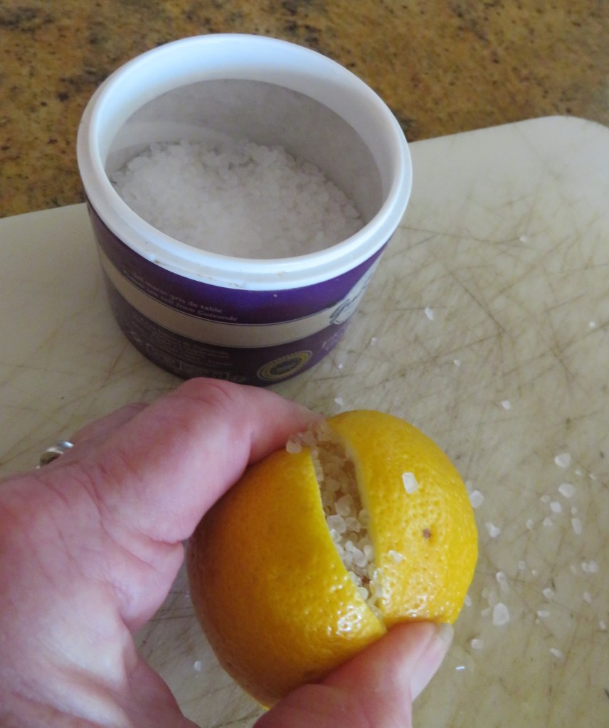 The recipe is basically 1 TBSP of coarse salt for every lemon, with about two TBSP of lemon juice per lemon. You will see what I am making soon. I am going to tease you just a little longer though, while I start preparing everything. π