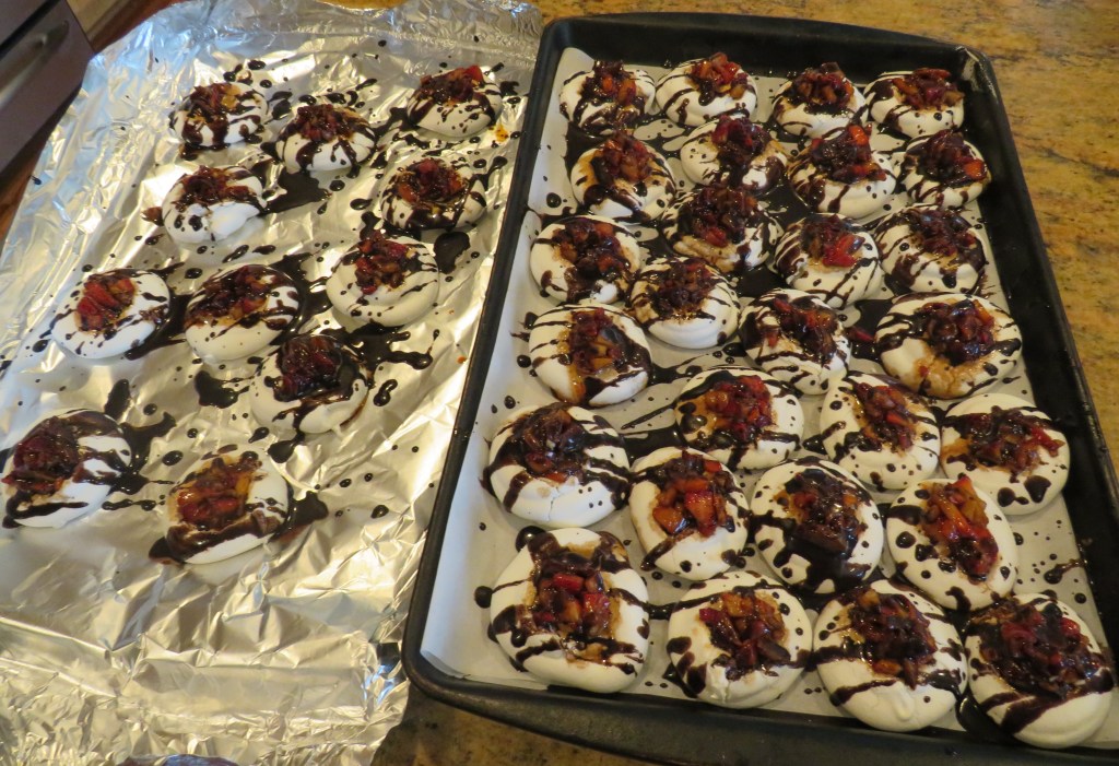 One of tonight’s desserts is orange blossom meringues with macerated strawberries and orange chocolate sauce. Yet another delicious way to use up some of my orange chocolate sauce. ๐