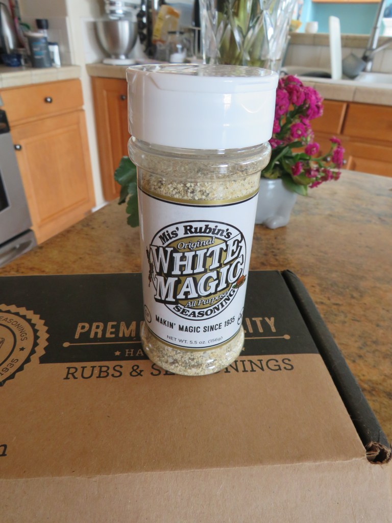 I am taking a slight detour today. I entered a cooking contest to create a recipe promoting Mis’ Rubin’s White Magic All Purpose Seasoning. I had to submit my recipe within a couple of days of receiving my package, so here it is. Wish me luck. If you try my recipe and like it, please submit your votes for me and my recipe. I could win some very cool kitchen gadgets and cooking utensils. 🙂