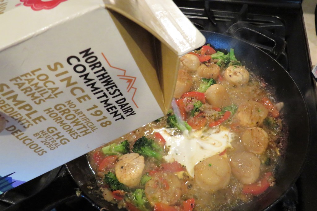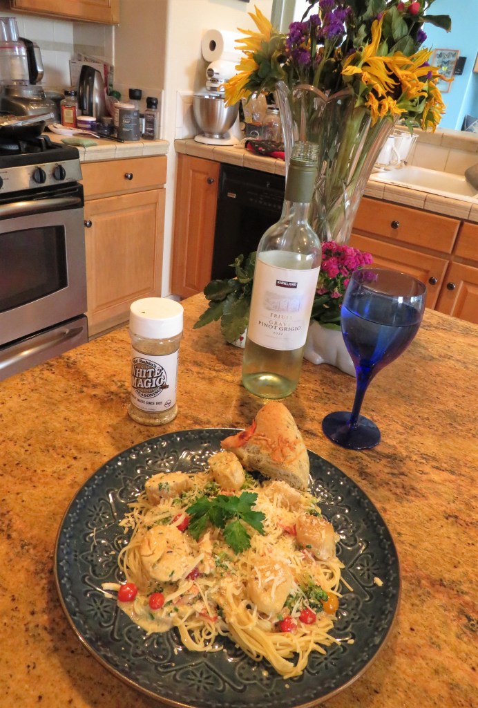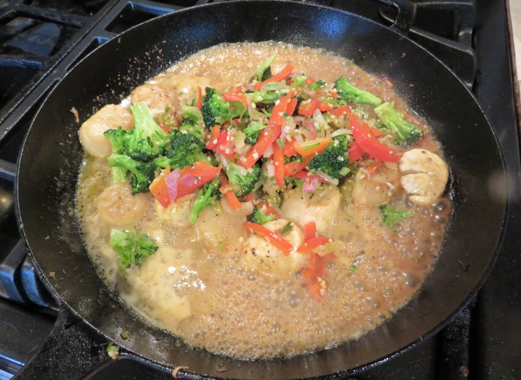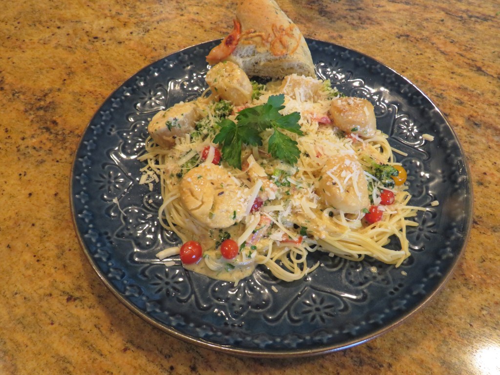 I used my White Magic to create a scallop and vegetable pasta with cream sauce.