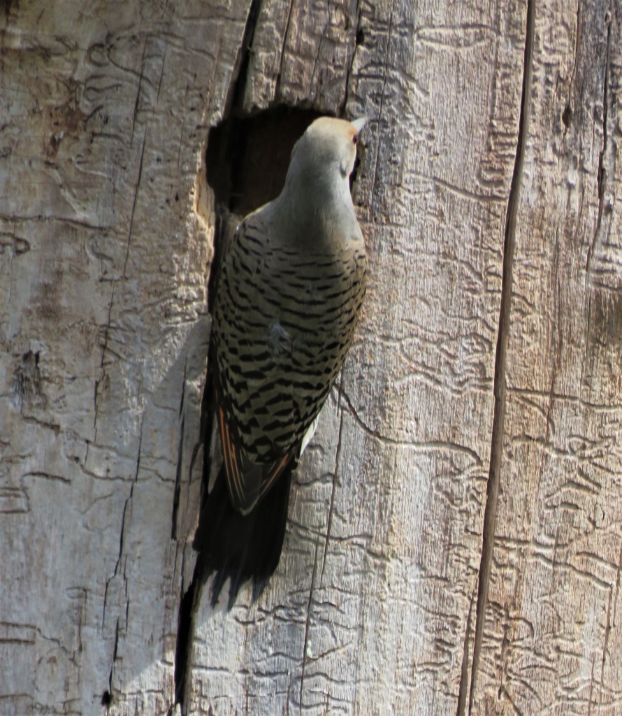 Because Roberta has so many plants around, she also has a lot of birds and butterflies too. This momma Northern Flicker, the same ones I get here at home, had a nest inside this tree. She was feeding her babies.