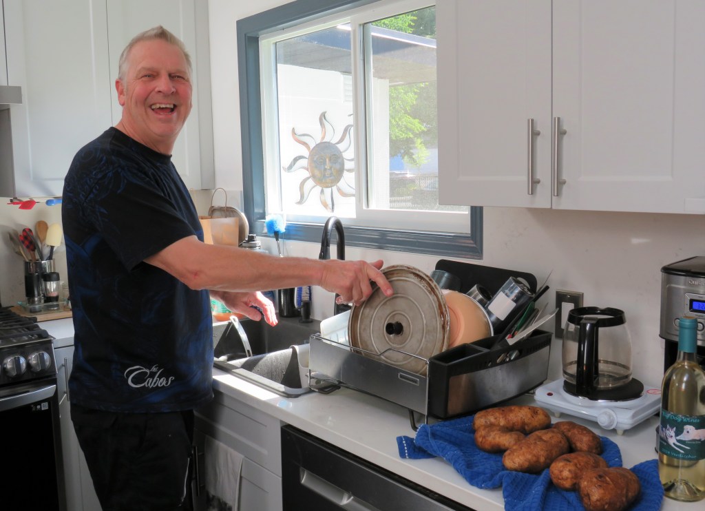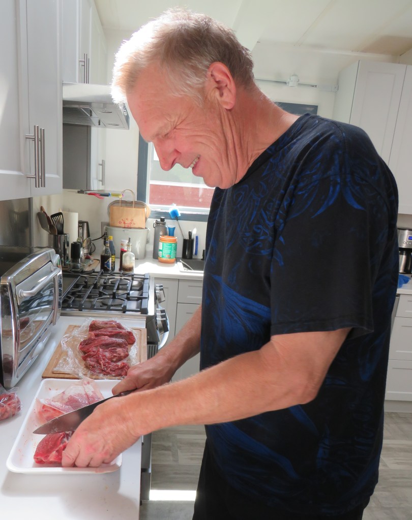While Roberta was introducing us to her plant family, Kim was busy in the kitchen cooking up a delicious steak dinner. Like me, Kim is very happy in the kitchen.