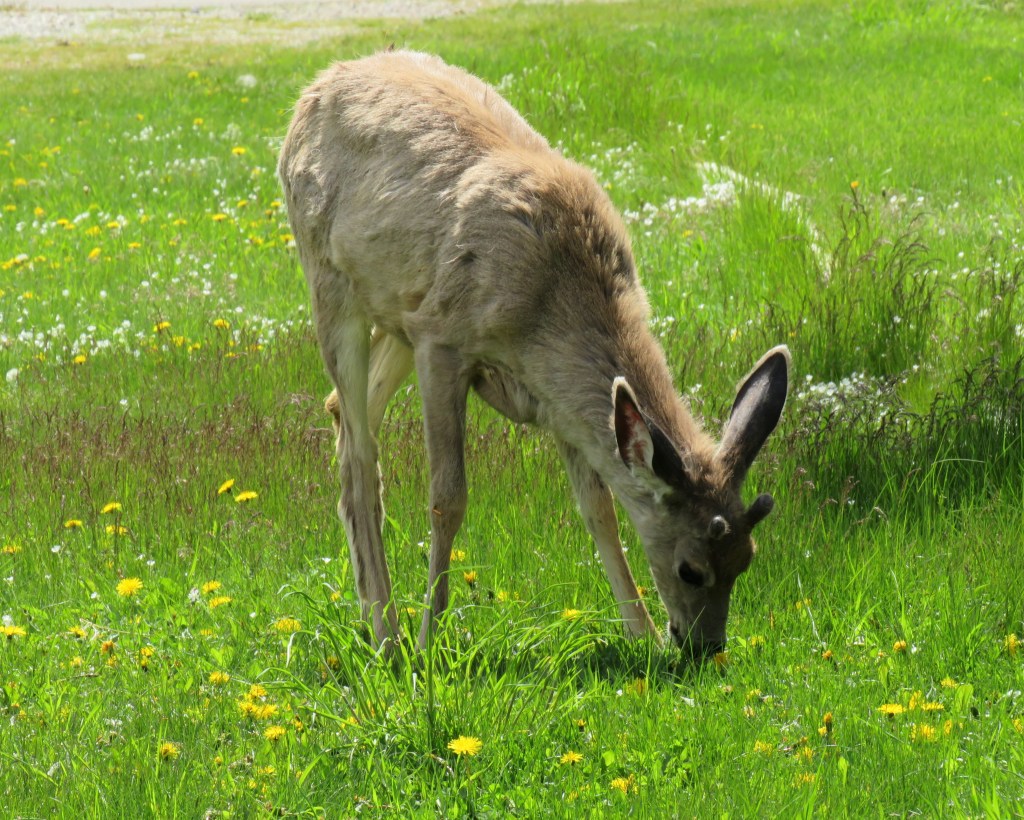 The town of Waterton was cute and quaint, but the most memorable parts for us were the deer sightings all over town. This one is just out for a jog along the water’s edge.