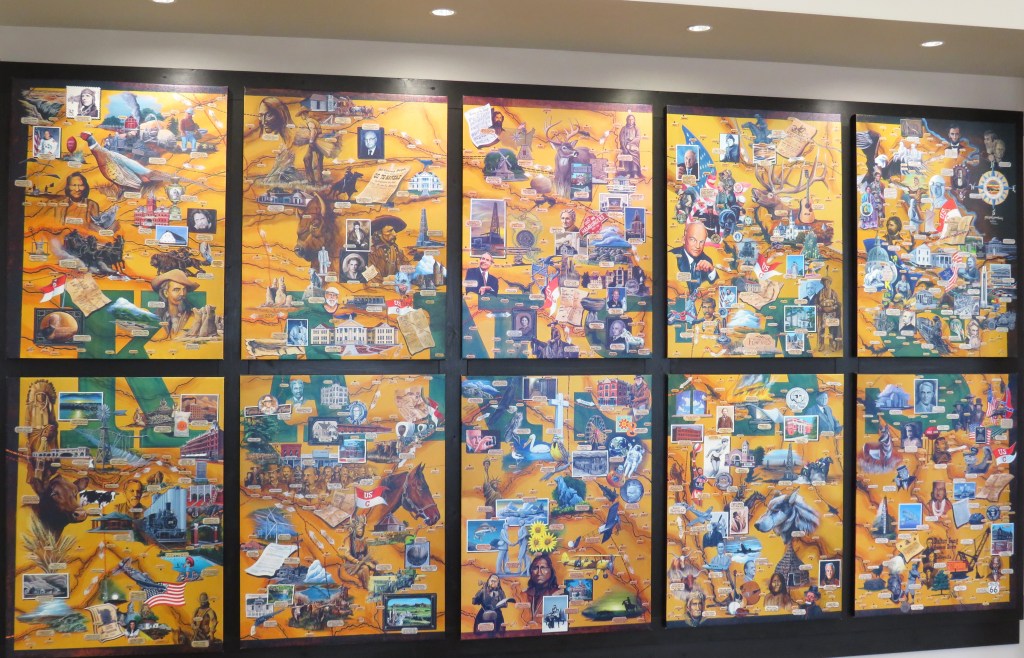 A mural depicting things and people that helped shaped Kansas.