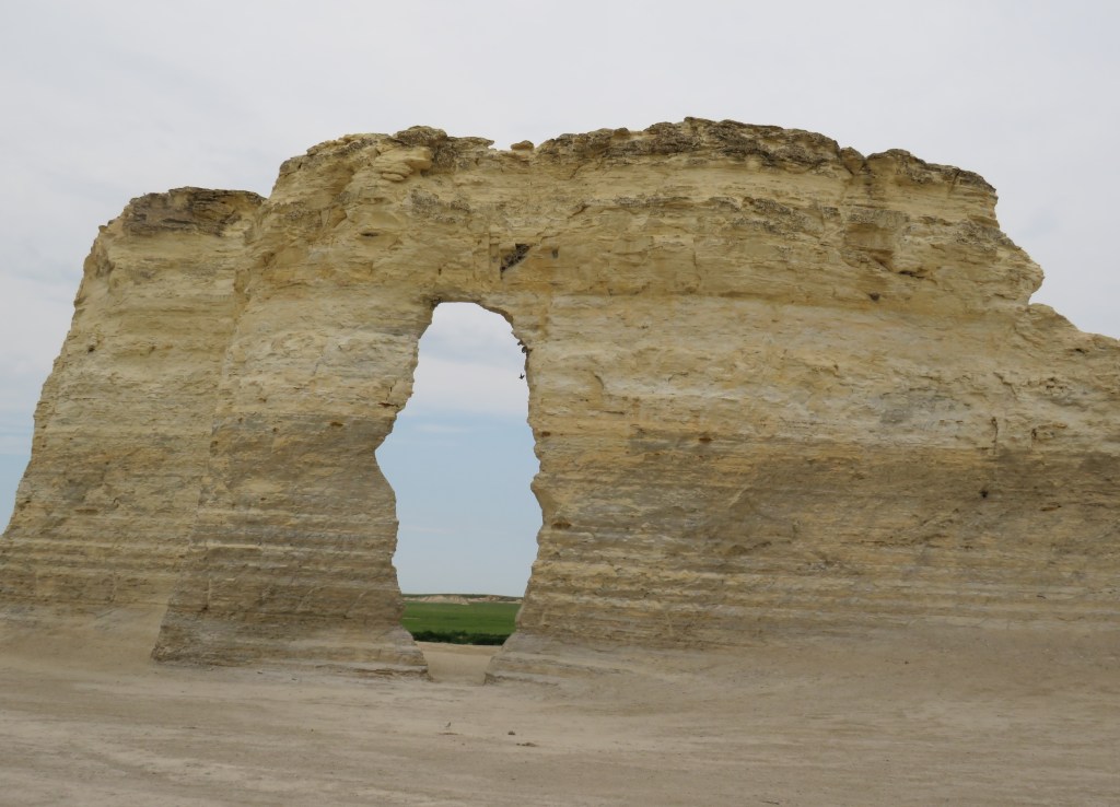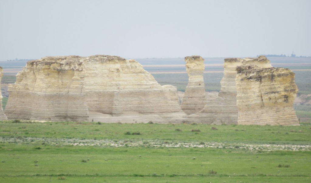 We went to Monument Rock, outside of Oakley, which was quite impressive. These magnificent large monoliths, rising as high as 70 feet, were created during the Cretaceous Period of geologic history when the area was covered by the Niobrara seaway, which extended from the present-day Gulf of Mexico north through Canada. When the sea receded, it left behind these magnificent marine sedimentary deposits that have eroded over time. Every inch represents 700 years of history! In 1968 Monument Rocks was designated as the first National Natural Landmark in Kansas and in 2006 was voted one of the 8 Wonders of Kansas.