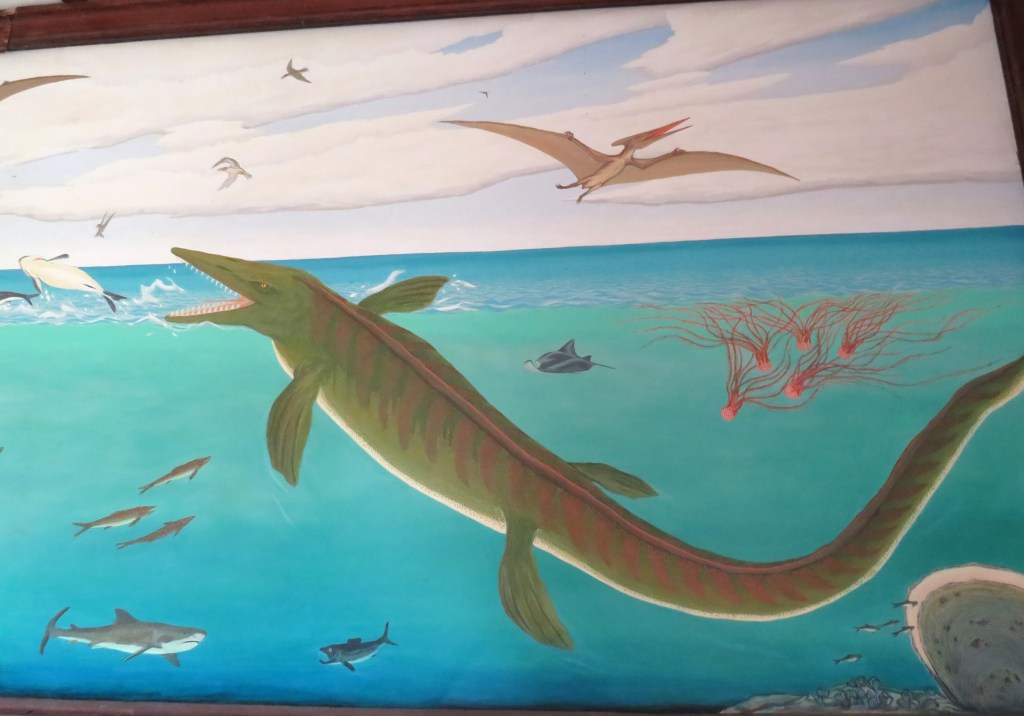 These were all fossils found in the area, dating back millions of years ago, when Kansas was buried under the sea. I am GLAD I don’t encounter these creatures when diving today! They look pretty scary!