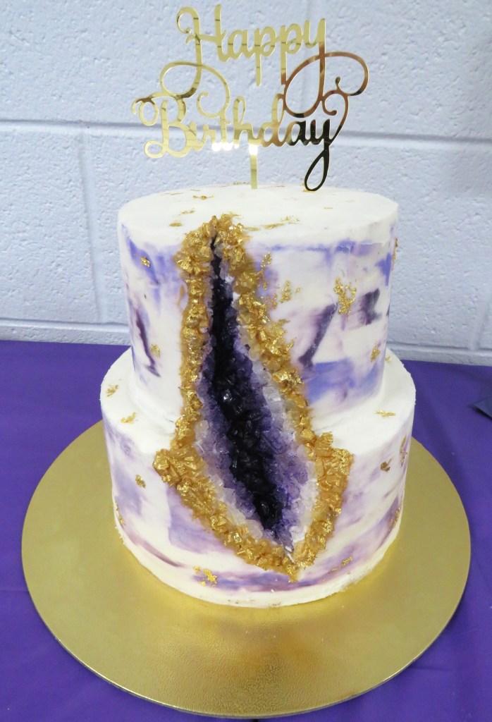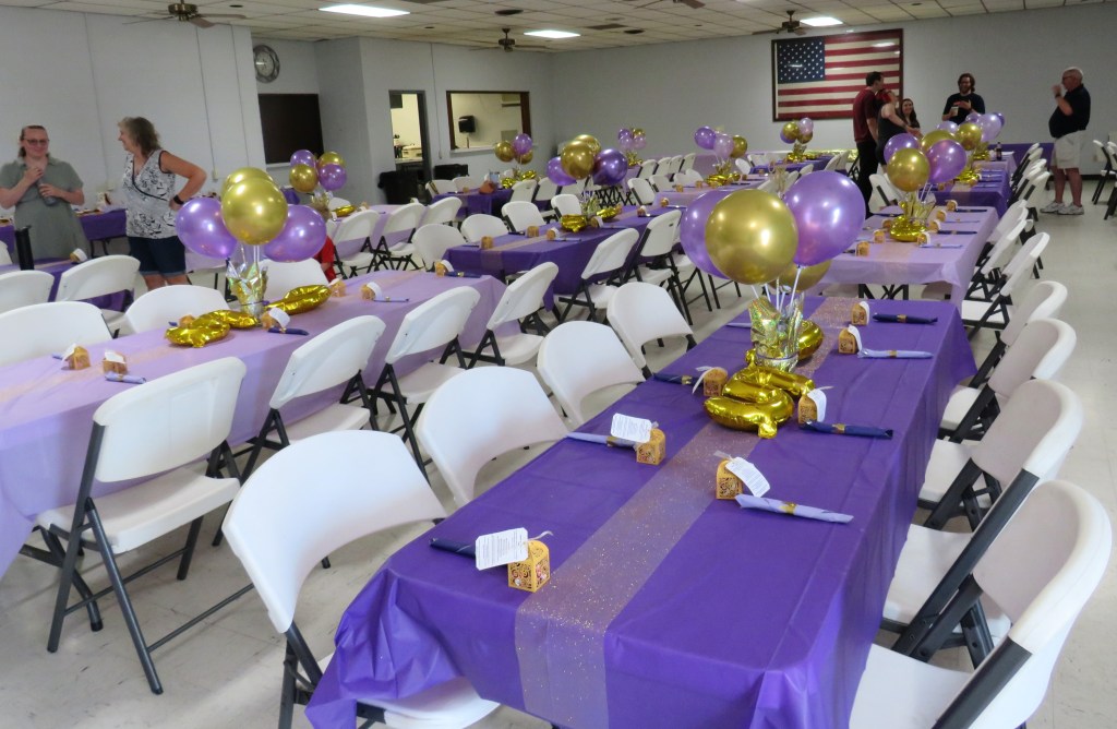 The family decorated the hall in shades of purple and gold, since purple is Ollie’s favorite color. We rented out the VFW club.