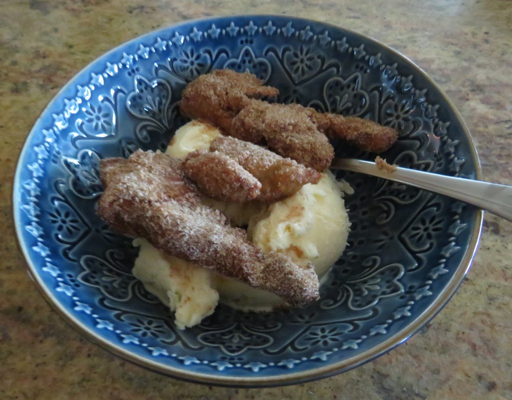 They were also good with ice cream, as Larry demonstrated later. Again, I had some extra dough already made, and just remade some more churros later.