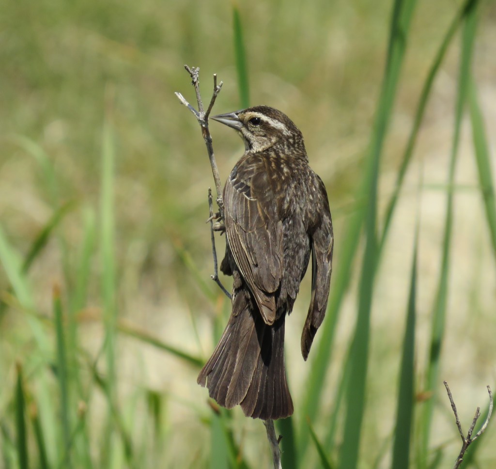 This is a female Red-Winged Blackbird. She looks totally different from her male counterpart.