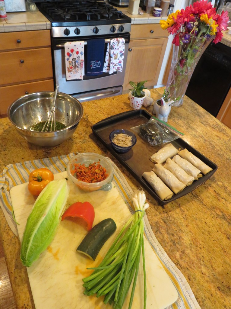 When it gets hot, we eat a lot of cool, refreshing salads. I tend to use a lot of my leftovers for my salads too. When I made my Asian steak Asian Steak I used less than half the steak I cooked, meaning there was still a lot left to use for something else. It was yet another scorcher of a day, so it was another salad for dinner night. Asian steak salad too. π I served them with my pork egg rolls, again made entirely from leftovers. Pork Egg Rolls