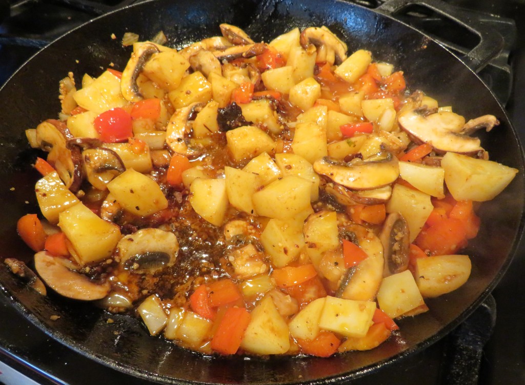 Pan-Fried Potatoes with Red Peppers, Mushrooms and Onions