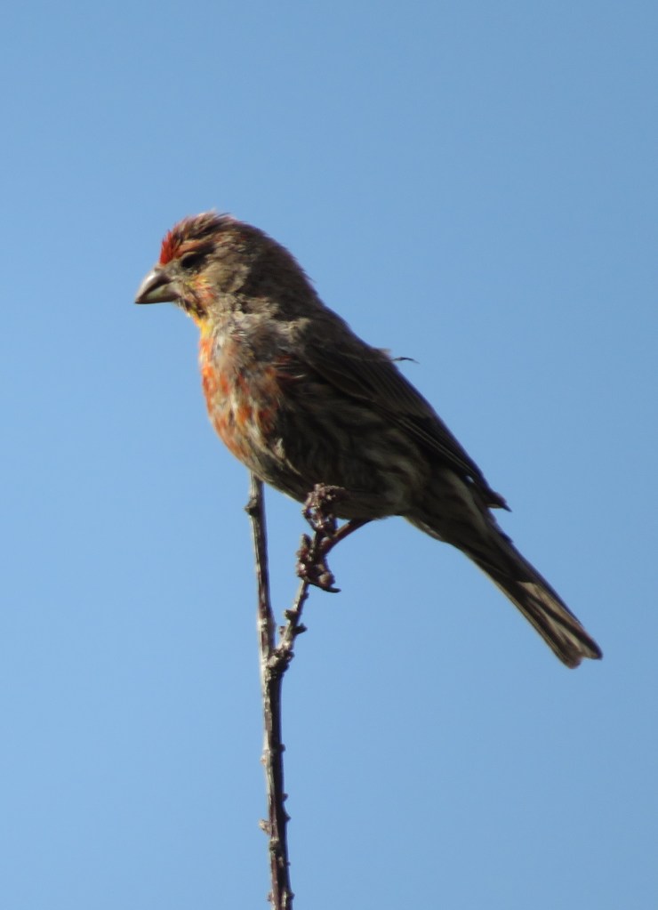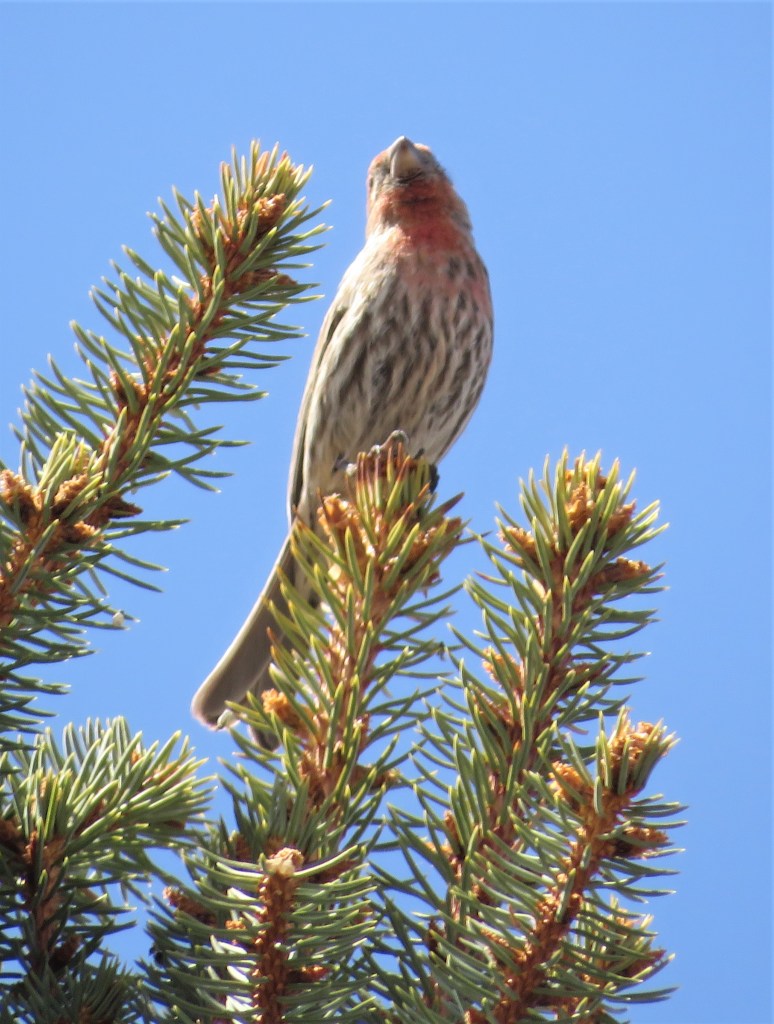 We have Cassin’s Finches, Rosy Capped Brown Finches and House Finches that love to call our area home. They are all close cousins and look pretty similar, but do have some subtle differences, so I always have to double check which one is which. Because they all kind of change from year to year as well, it makes it even more challenging to know which one is which. But when in doubt, I always go back to my bird books to see which one I am looking at. Last night as we were eating dinner, dining al fresco on our deck, we were joined by a little Cassin’s Finch in one of our trees. He was just being friendly and wanted to say hi.