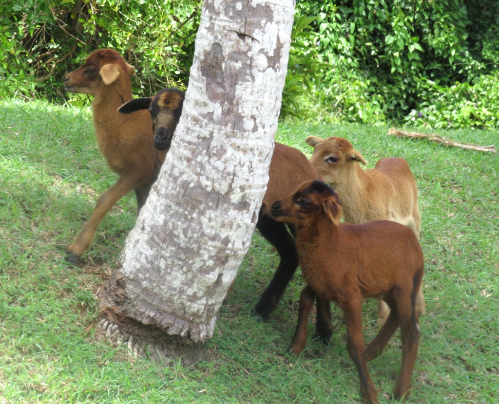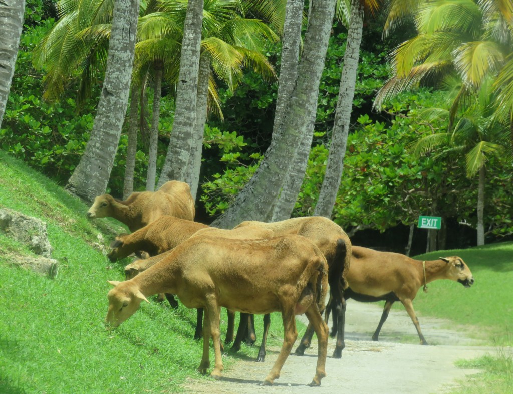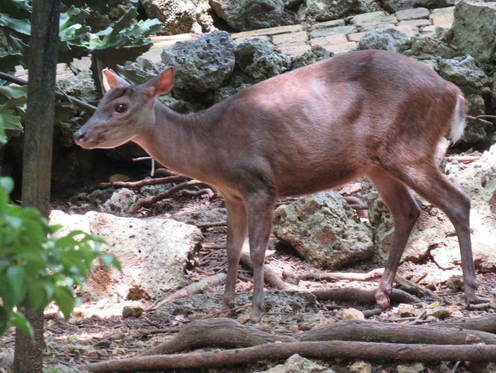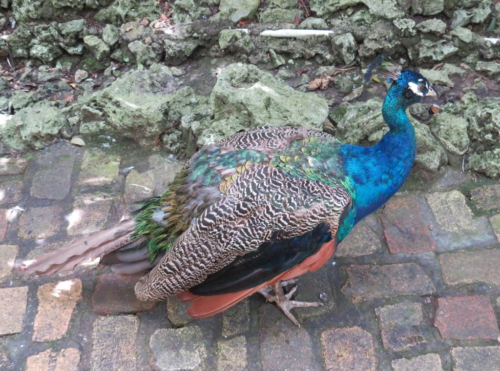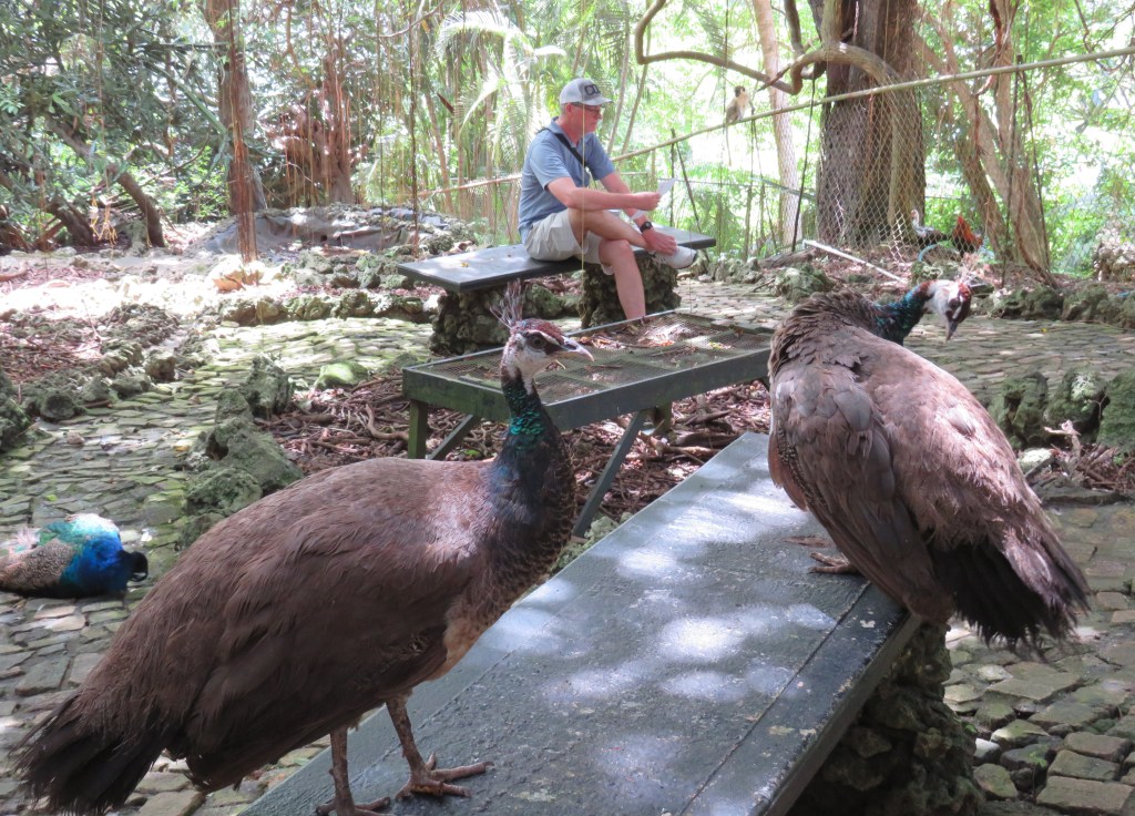 We saw all kinds of animals, native to the Caribbean islands and Barbados. There were, green monkeys, originally from Africa; tortoises; goats, peacocks, chickens and brocket deer, that all roamed the grounds freely. They also had some caimans penned up in their watering area, along with some large iguanas from Cuba, some guinea fowl, tropical birds of all colors and kinds, and even a couple of snakes, that I quickly bypassed.