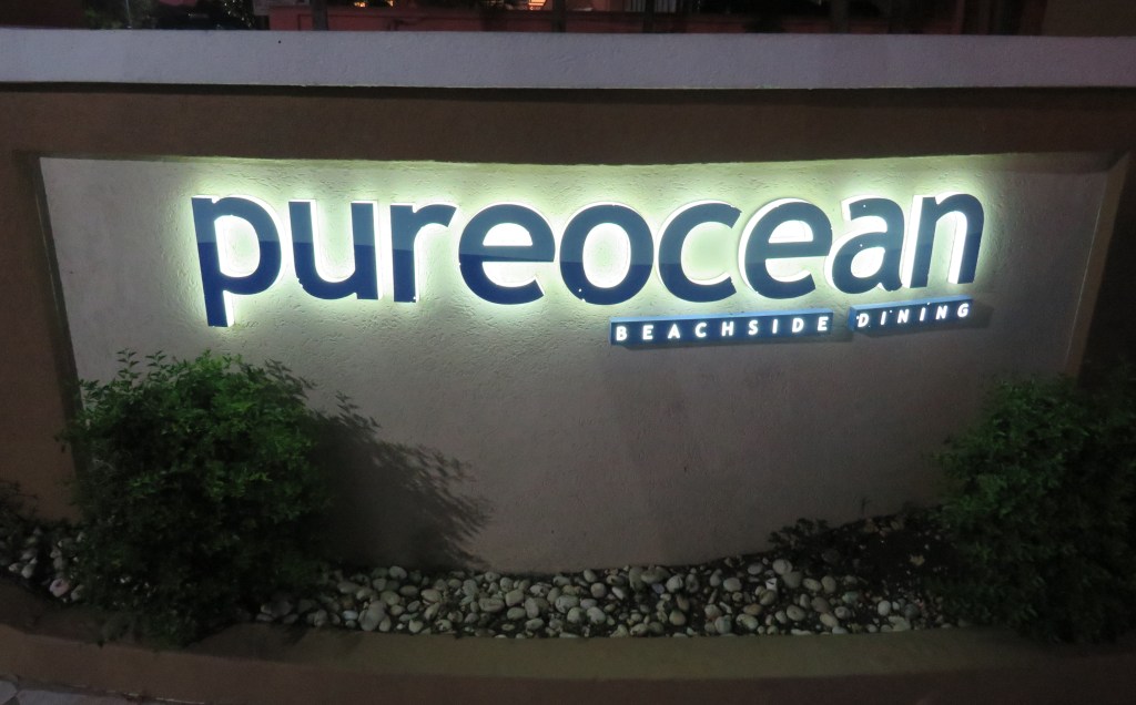 First the dinner, with an ocean view. Walking to the restaurant we noticed out hotel has a fountain that changes colors.