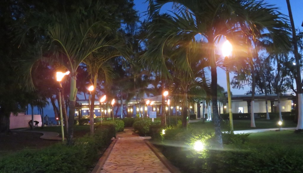 Tiki torches lit up the pathway.