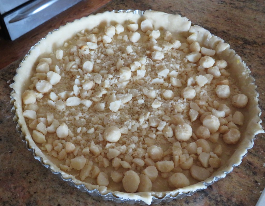 Add the chopped macadamia nuts to the bottom of the dough.