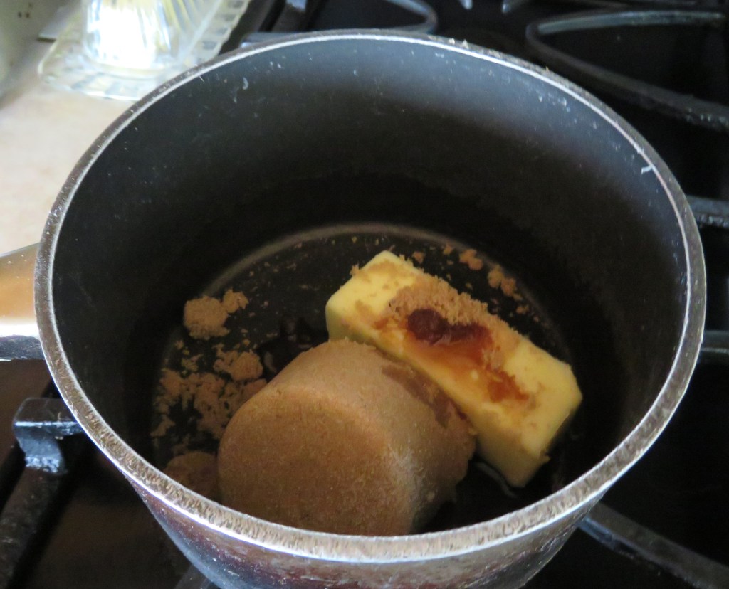 Melt the butter, brown sugar, salt and vanilla together in a saucepan, cooking until the sugar and butter are completely melted.
