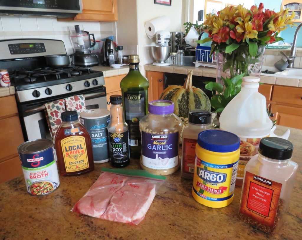 We had some pork loin down. Larry was in the mood for something Asian to be made with it. No problem. I can do that. I was inspired by a honey garlic pork recipe I saw and went from there. We tend to like our foods with a little spicy kick, so I spiced it up a bit and added vegetables to top it off.
