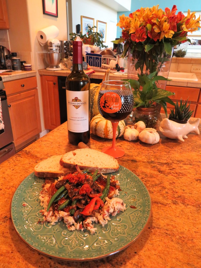 I served this with a cabernet. Pork is one of those dishes that goes well with either red or white wine, but because my sauce was a rich, brown, spicy sauce, I chose red wine. It was a perfect combination and all the flavors just popped to life.