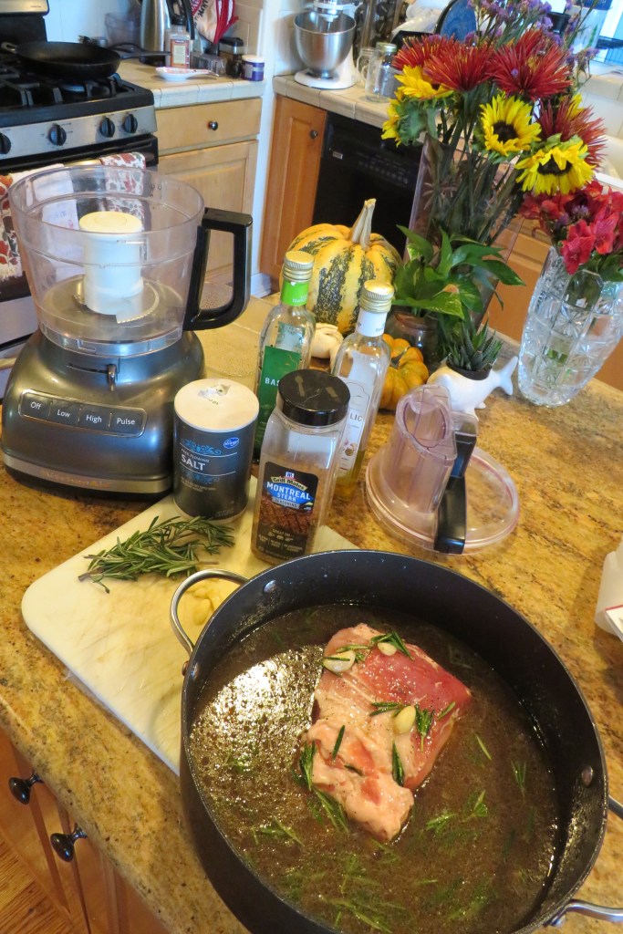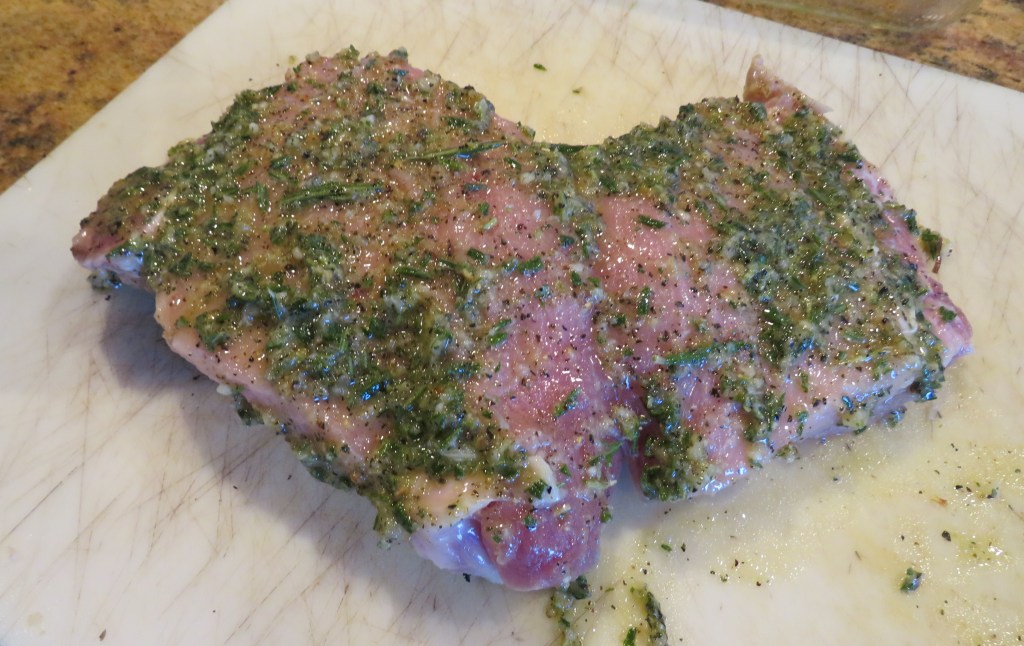 We’ve been eating a lot of steak and chicken lately, so it was time for some pork. We had a delicious pork loin that I cooked Tuscan style, with garlic and rosemary.