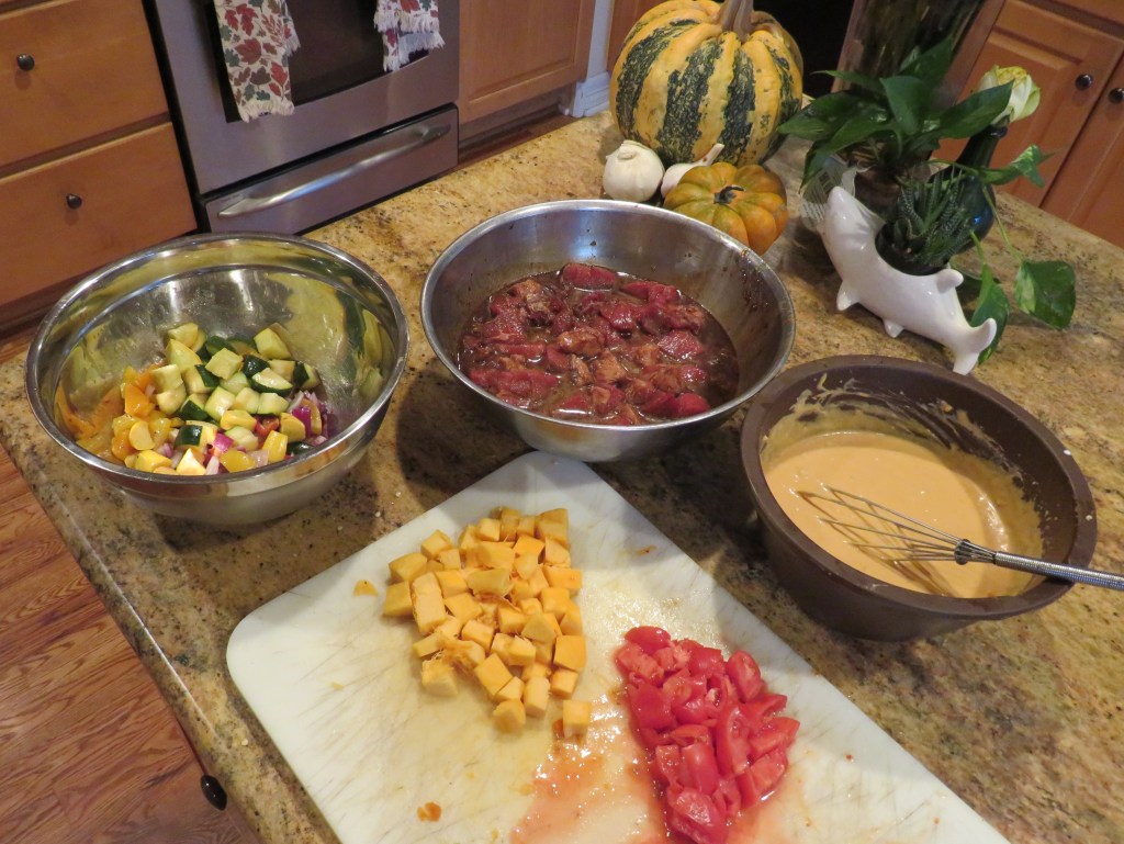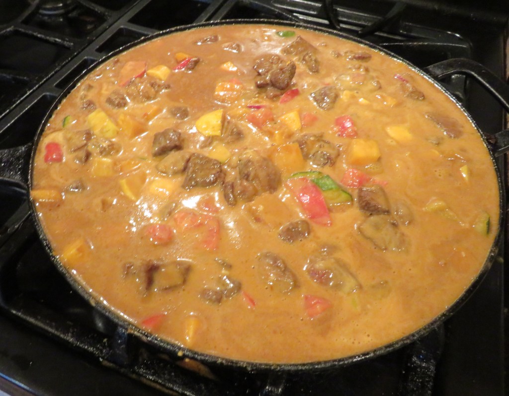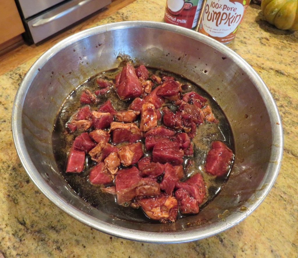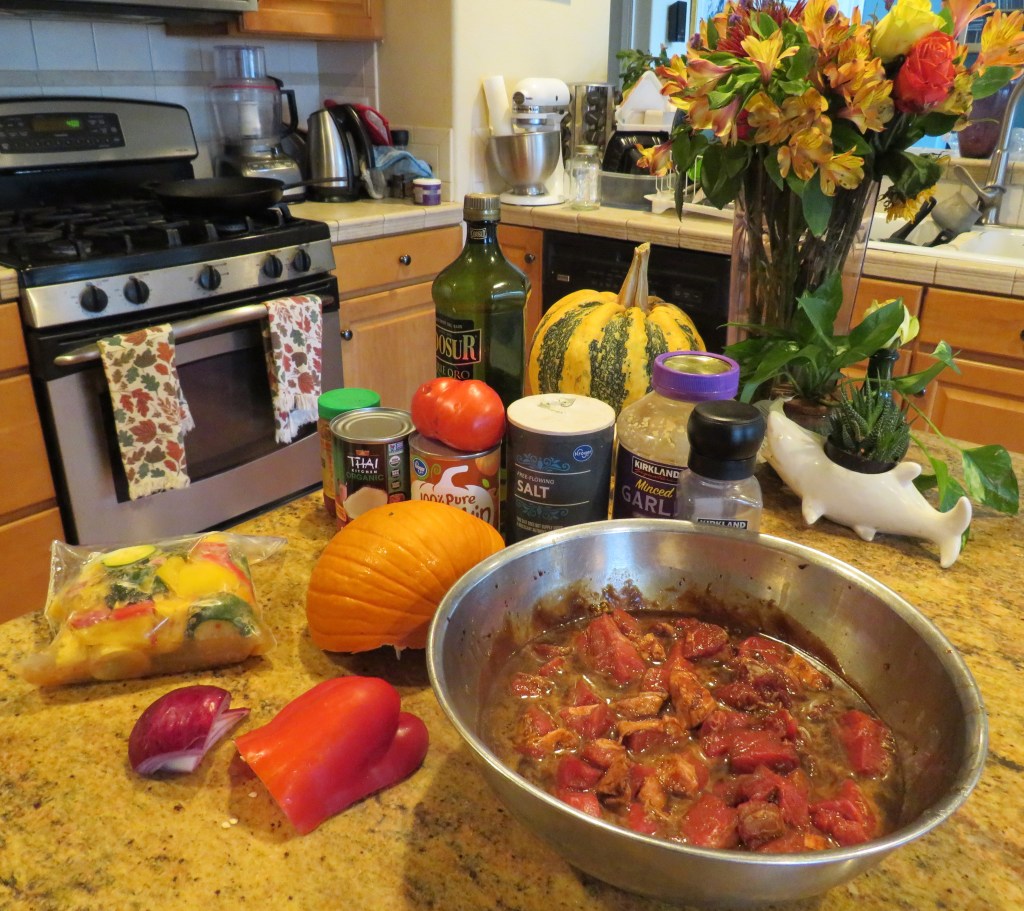 This pumpkin curry rendition is similar to another version I made with chicken. Pumpkin and Chicken Thai Redย Curry Both are very good, but have slightly different personalities. Of course I tweaked it and made it a little different. See, I even tweak my own recipes when I need to. ๐ One of the main reasons for making it different is that I needed to make a big, bold marinade for my lamb, and that of course led to making a few other changes as well.