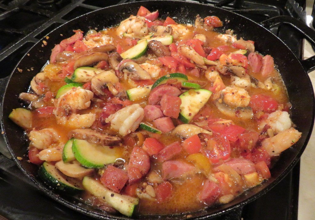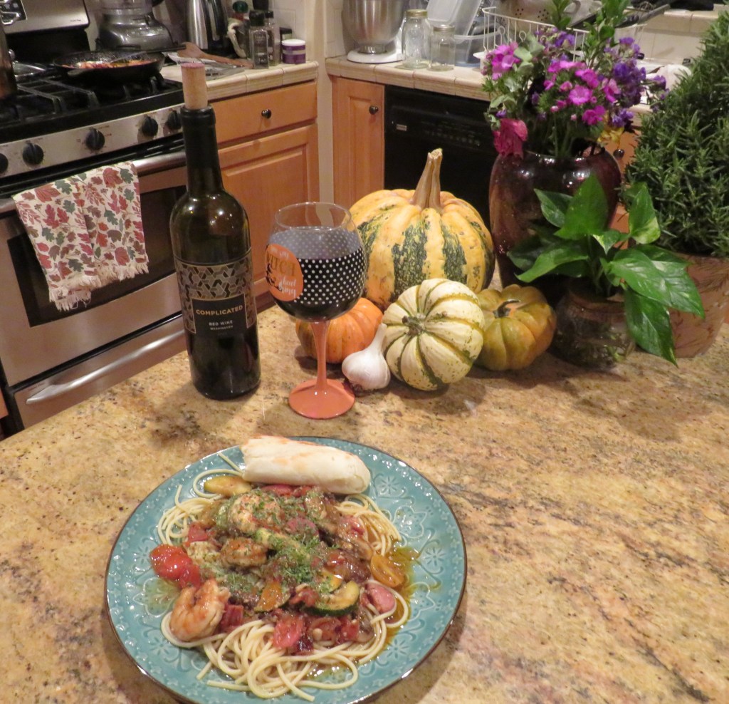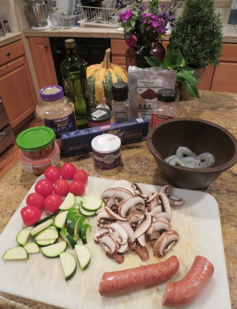 This spicy shrimp and sausage dish was created with a little help from my dear friend, “The Queen of Leftovers”. My alter ego and I had a general idea of what to make, and then raided the fridge to use whatever leftovers I could add to it. What “we” created was a delicious spicy shrimp, sausage and veggie pasta very similar to Shrimp Diavolo, which was what Larry was really in the mood for anyway. Shrimp Fra Diavolo So, it all worked out as it was supposed to. 🙂