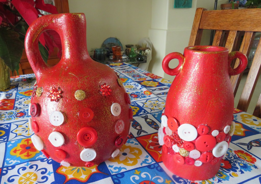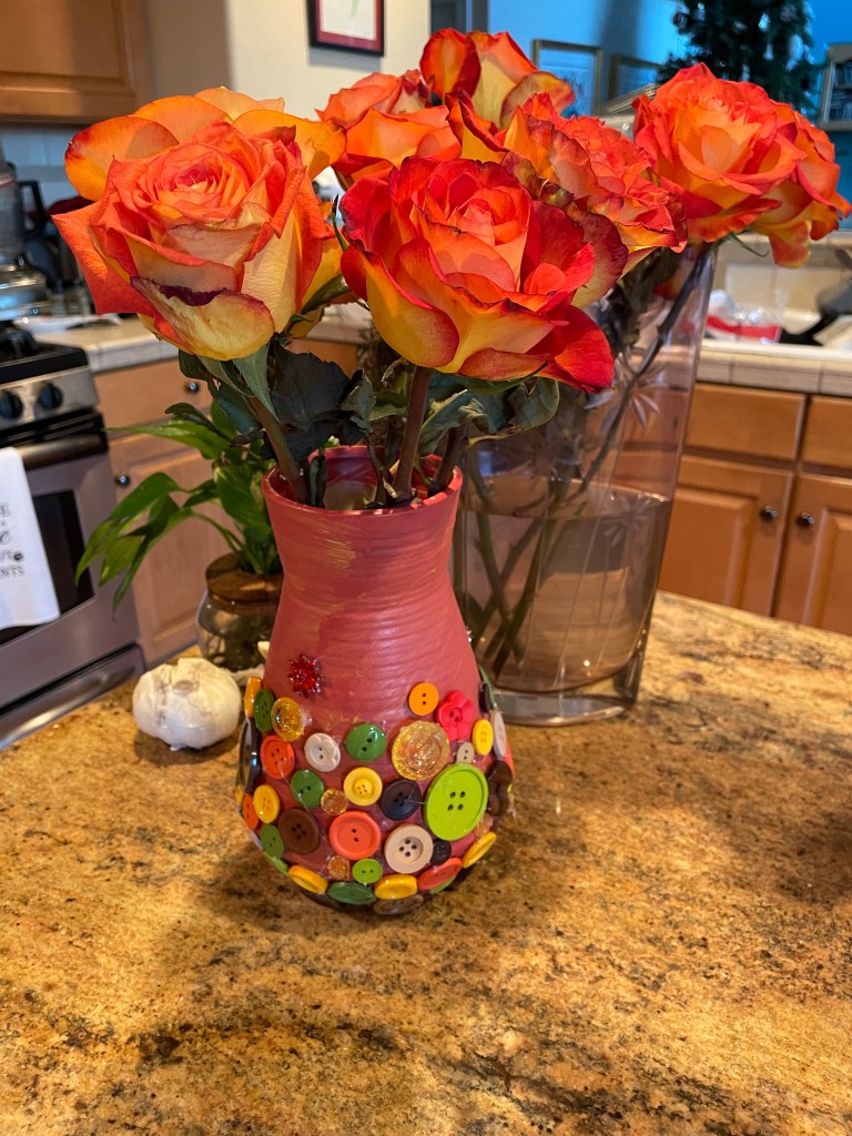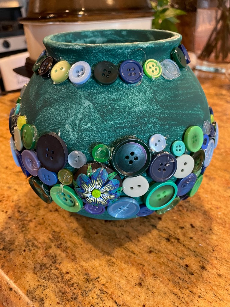 Before giving these out, I have to make sure I clean up all the excess glue off the buttons, vases and other projects. Sometimes it is easier to clean them once the glue is fully dried. These are all spoken for, but if anyone wants anything, I am more than happy to create something that is one-of-a-kind for you. 🙂