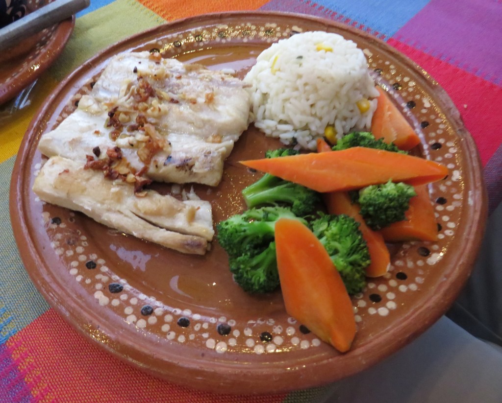 When surrounded by the sea, we tend to eat as much fresh seafood as we can. Larry ordered the grouper cooked in a delicious garlic sauce, con arroz y verduras, or rice and vegetables.