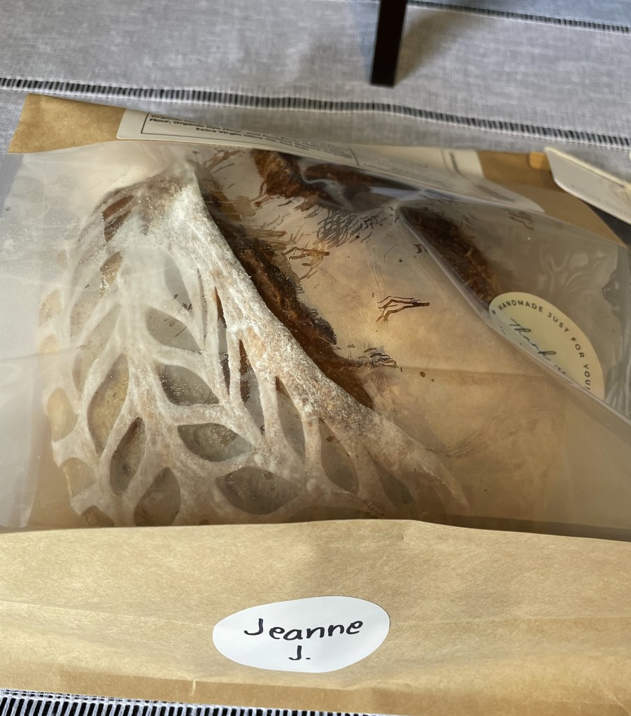 I had never heard of La Casera Sourdough Breads before receiving my gift certificate. But I know about it now. π Because Christina bakes the breads from home kitchen, you have to pre-order what you like, then she gives you a pick-up time. When it is ready to pick up, Christina will have it waiting for you on her front porch, with your name on it.