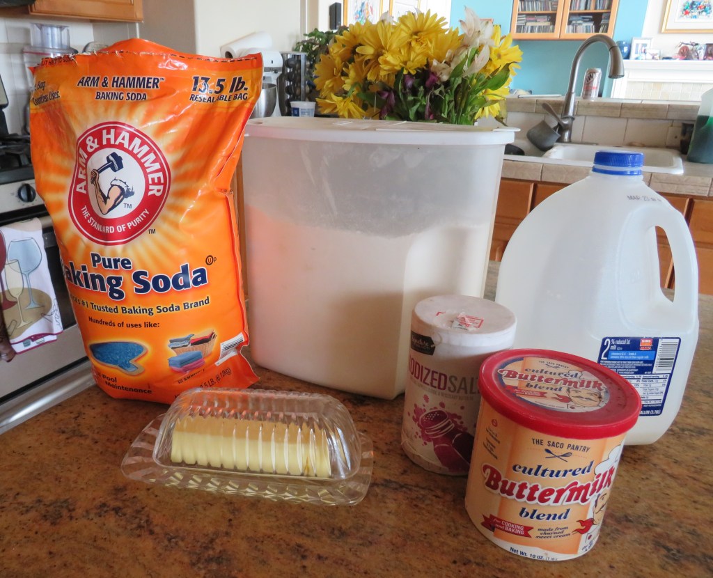 This is definitely a a case where simple is the best. I used only 5 ingredients for this delicious, versatile bread, and no yeast. Since I detest buttermilk on its own, I buy the dried buttermilk and mix it with milk right as I am using it. I like mixing it with milk vs. water, because it is richer, creamier and has more texture.
