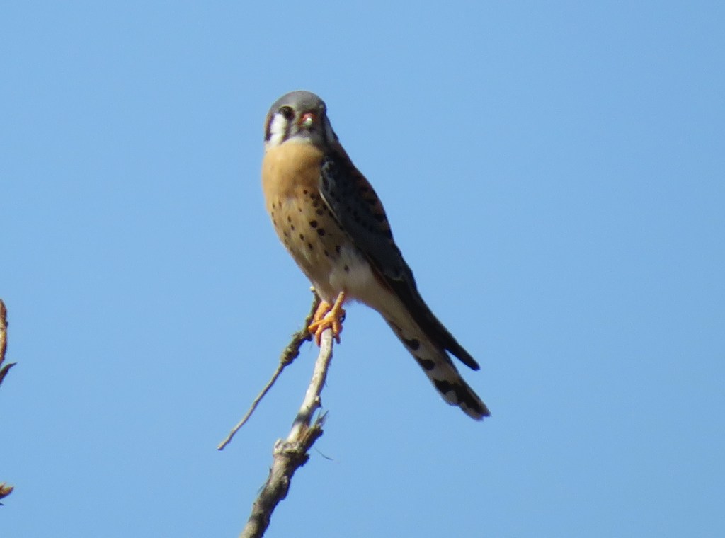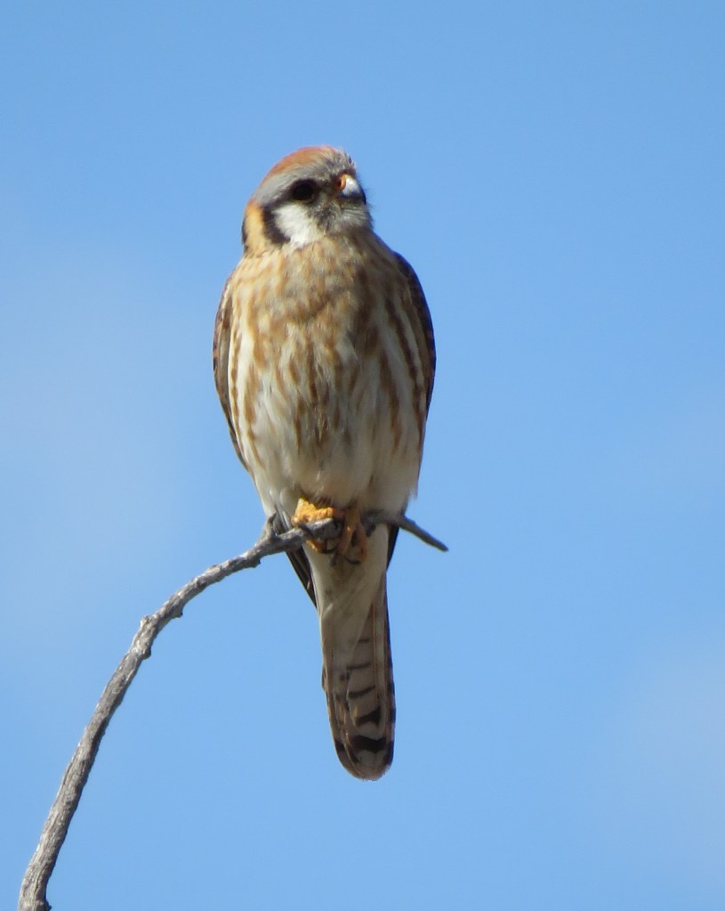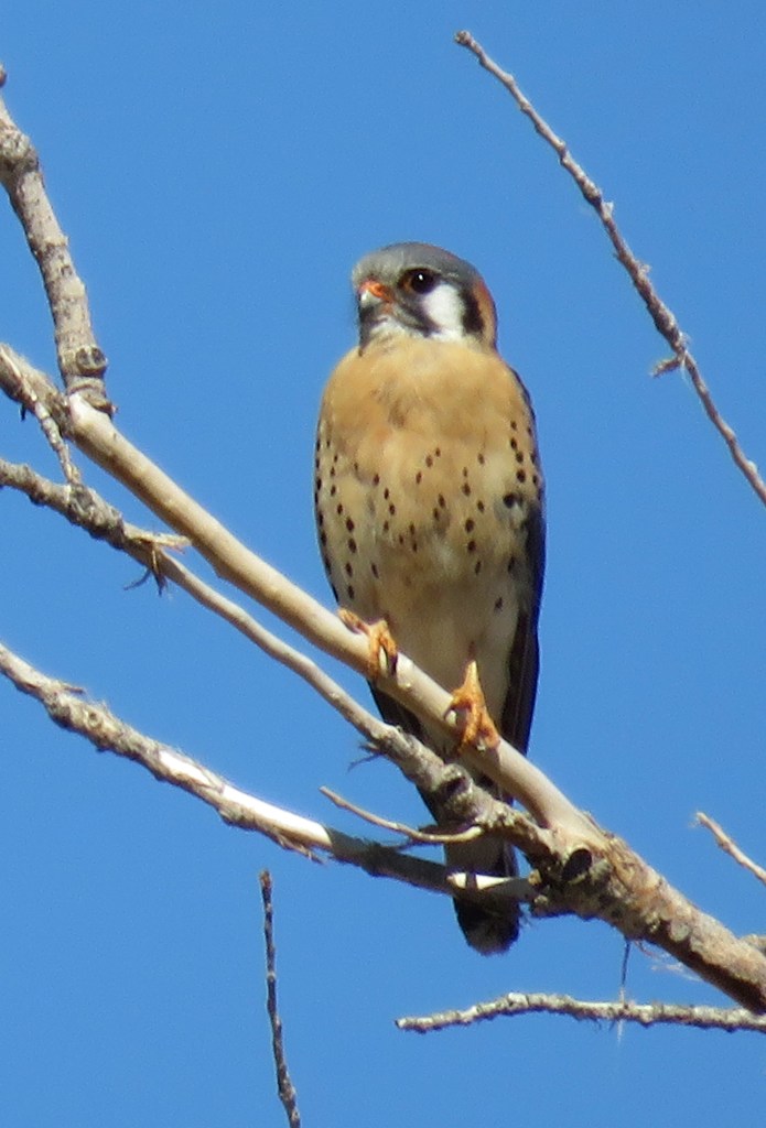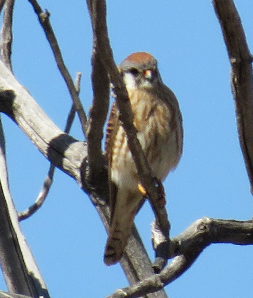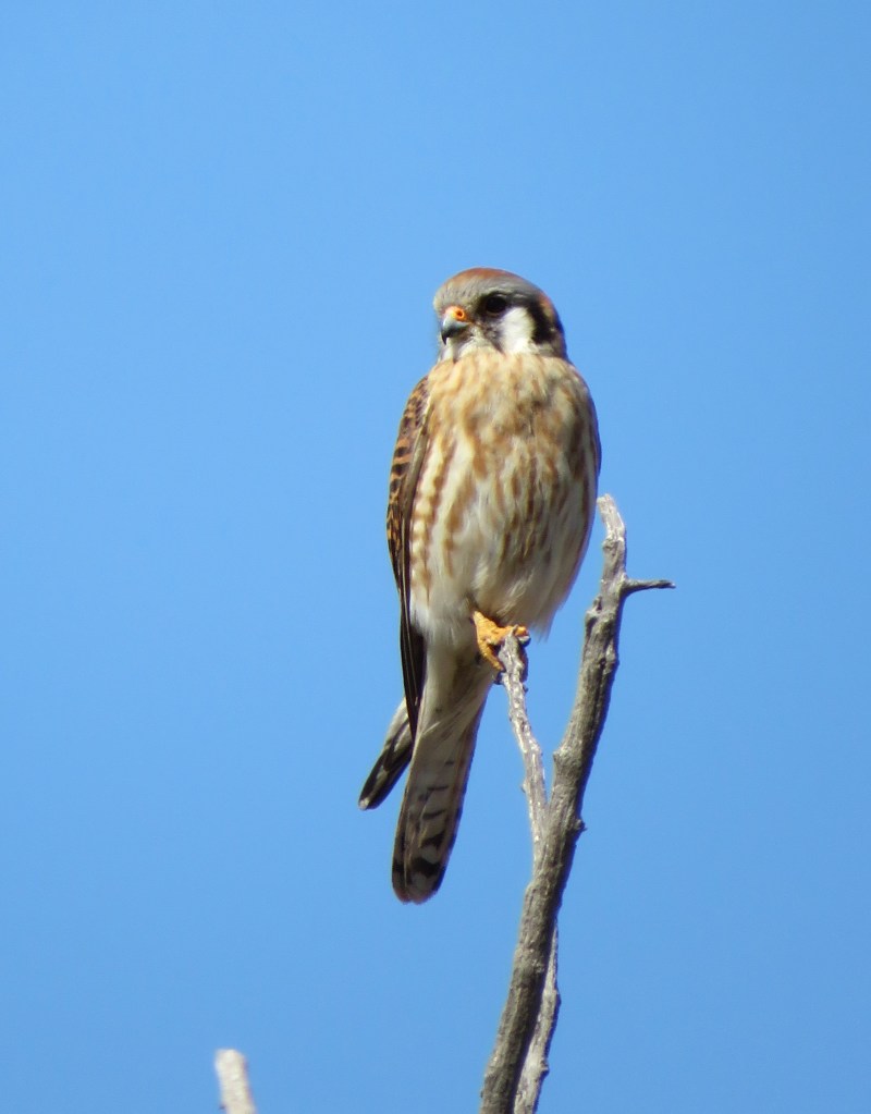 I just love my American Kestrels. They are so pretty and colorful. But don’t be fooled by their good looks. They are strong, powerful little hunters. Lately, I am seeing so many, perched up high in trees, always on lookout, watching for their prey.
