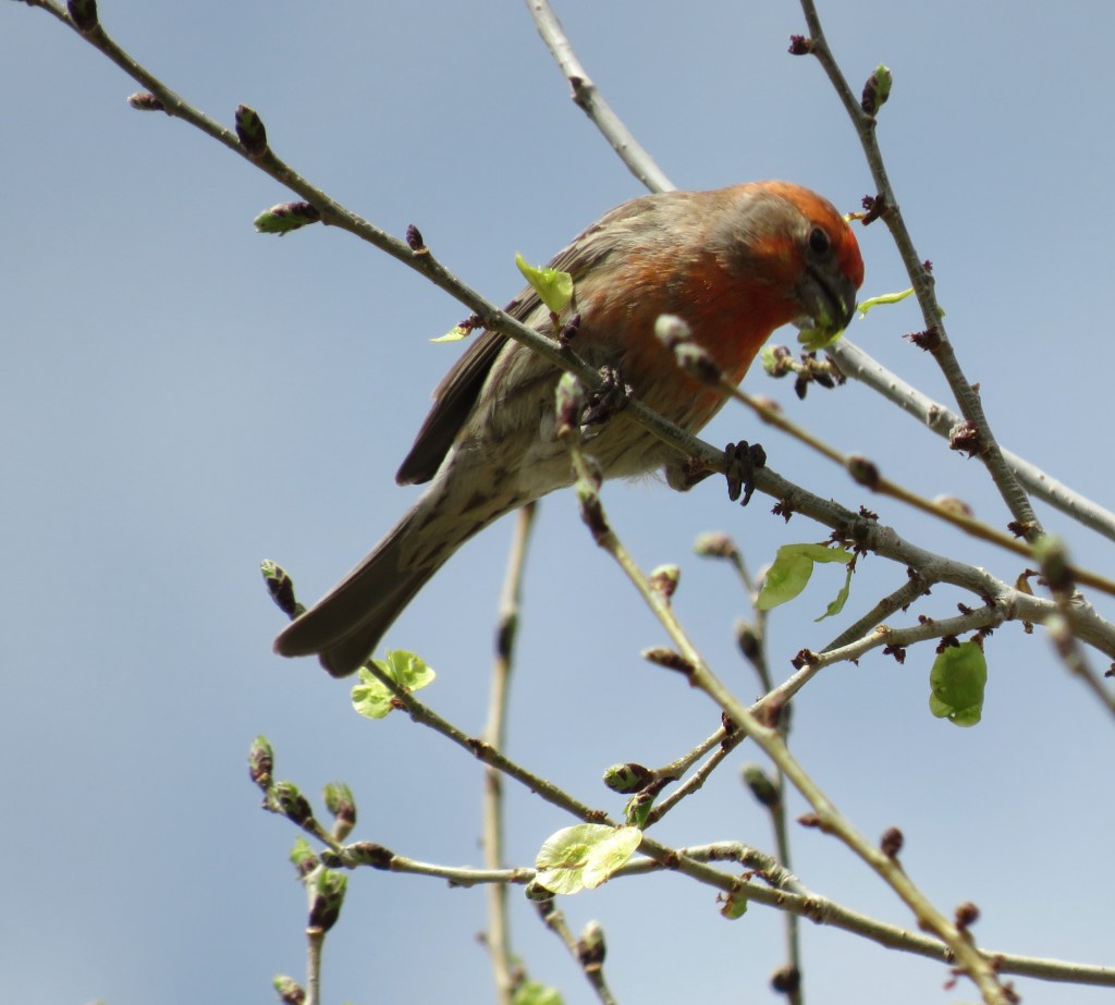 The other day, I saw a happy little House Finch up in the tree. He literally looked like he was smiling and just happy to be there. It was a cloudy, overcast day, but he didn’t seem bothered one bit.