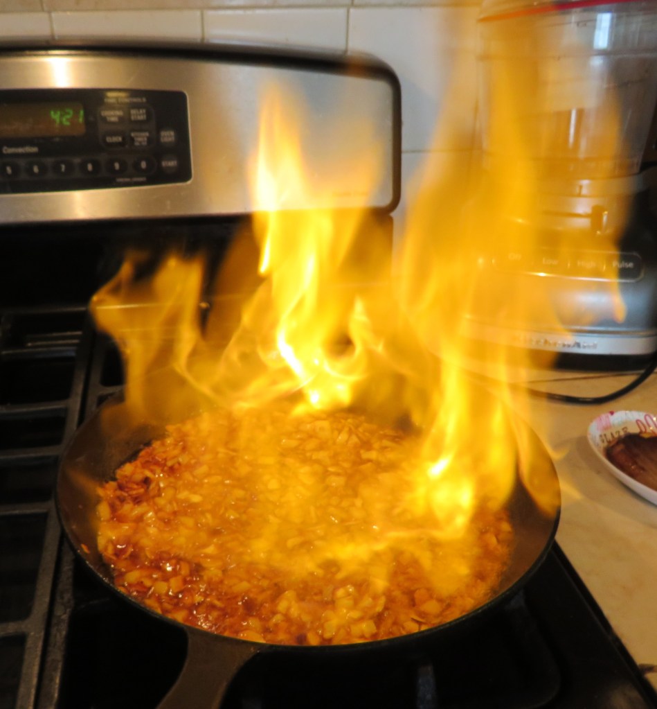 Carefully add the almond liqueur and flambe for about one minute or until the flames dies down and most of the alcohol has burnt off.
