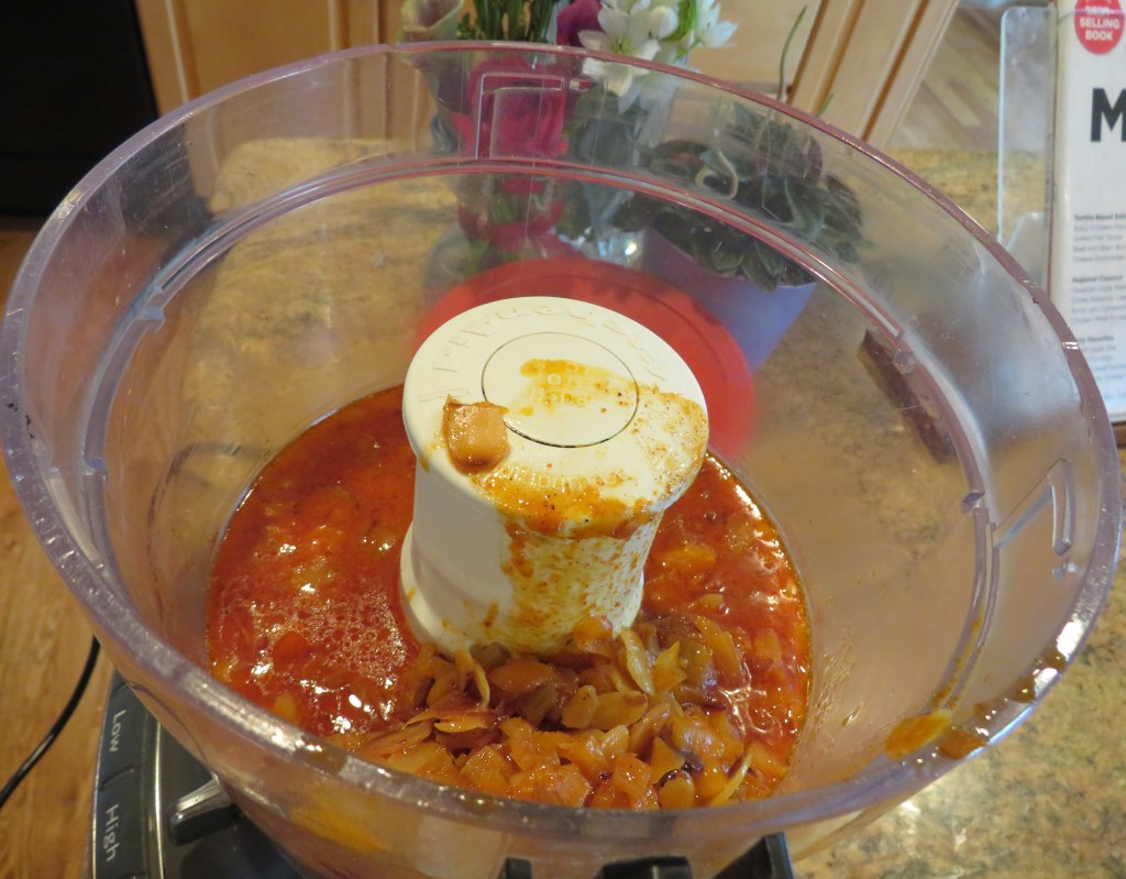 Pour the mixture into a blender or a food processor and process until it is a smooth liquid.
