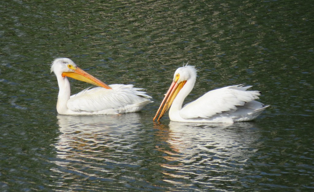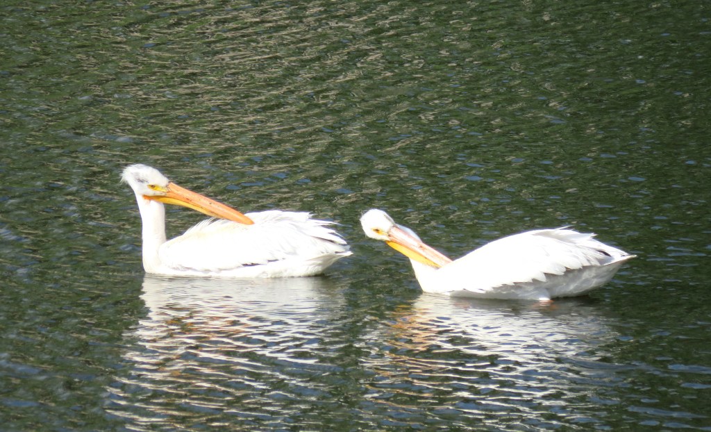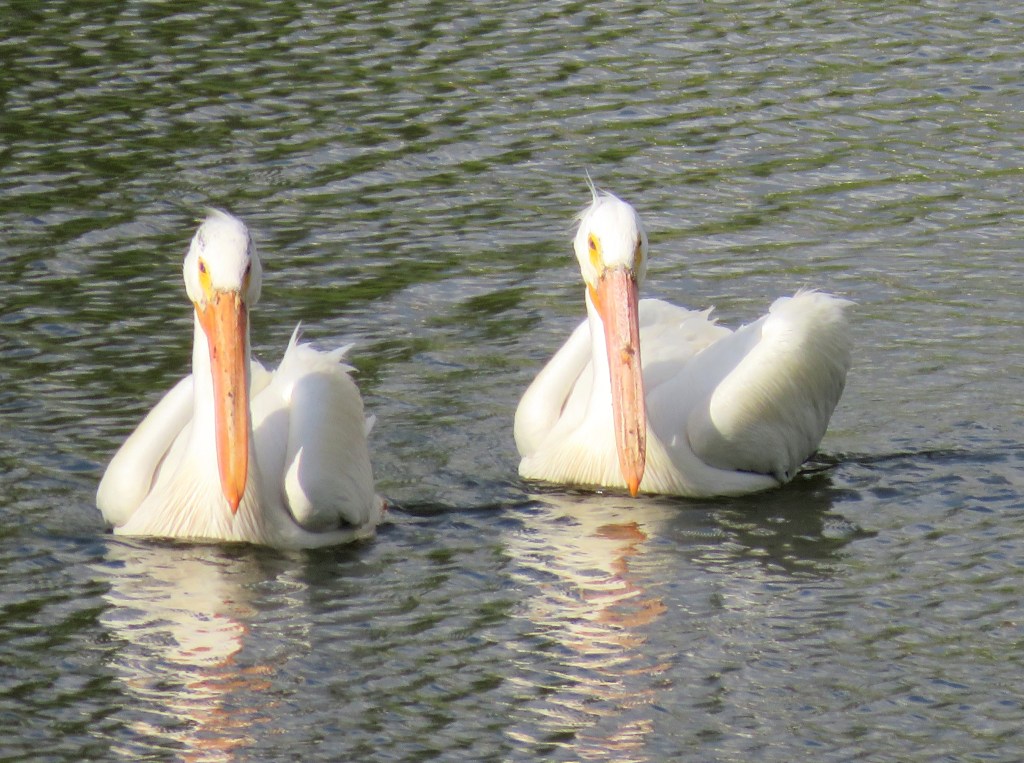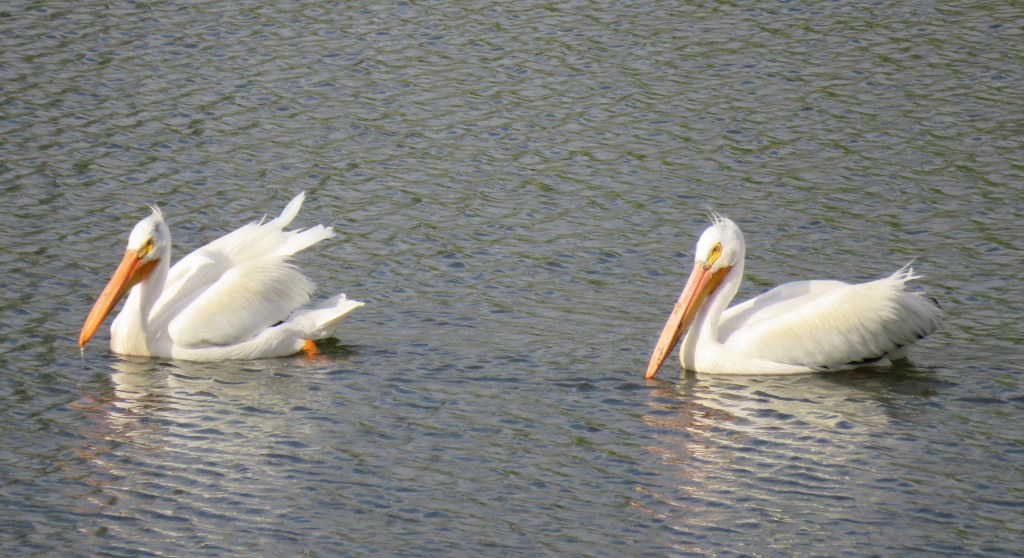 Our Pelicans are teasing me. One day I see them, then I don’t. Or I will see them, but they will not let me take any pictures of them. They are beginning to settle in though and I am starting to see them a little more frequently. I even saw a pair swimming together that didn’t mind that I was capturing them with my camera from the luxury of my back deck. In fact, I think they were even doing a little synchronized swimming just for show and just for the camera too.